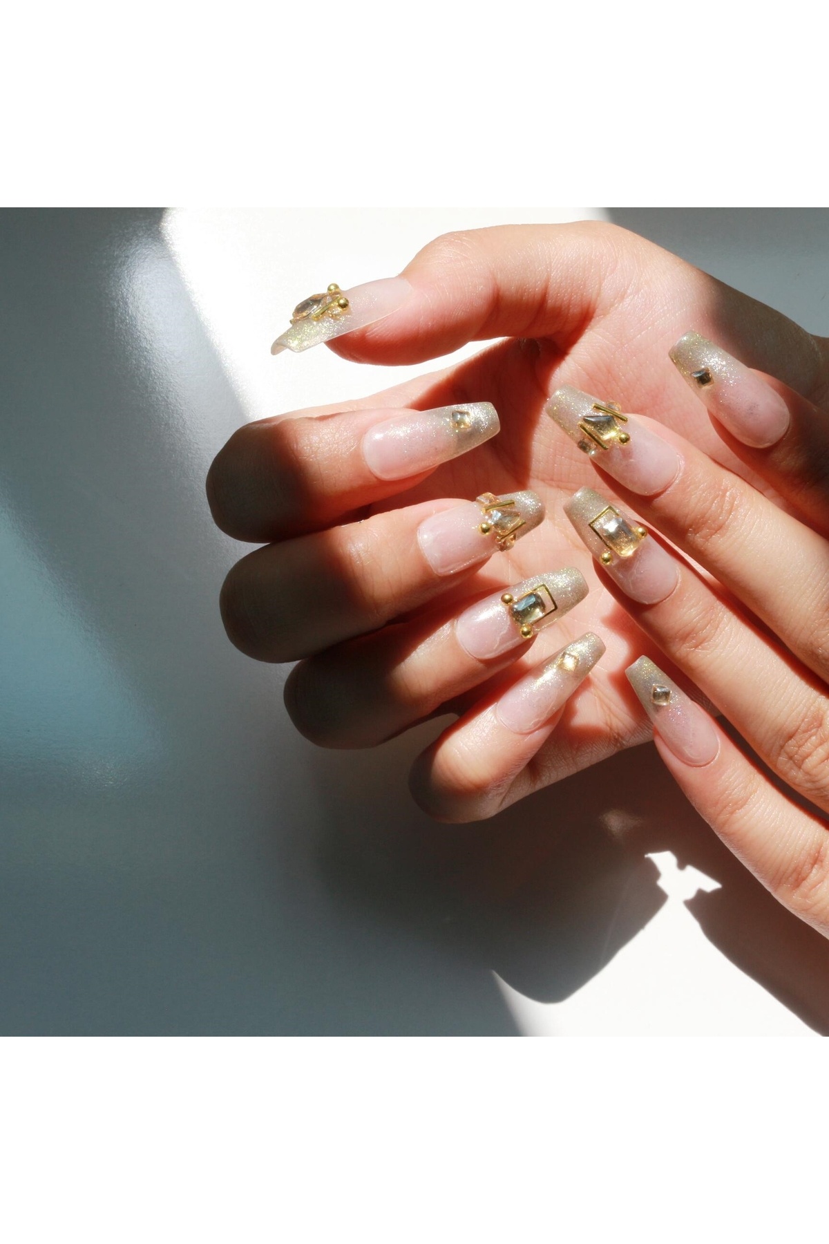 150090 Şeffaf Ombre Kedi Gözlü Taşlı Takma Tırnak - S 150090 Şeffaf Ombre Kedi Gözlü Taşlı Takma Tırnak - S 150090S تک سایز