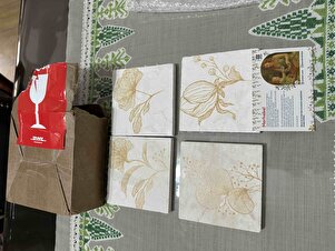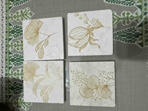 Altın gold çizgili zarif çiçek desenli doğal taş bardak altlığı 4’lü set Altın gold çizgili zarif çiçek desenli doğal taş bardak altlığı 4’lü set ars0139 تک سایز