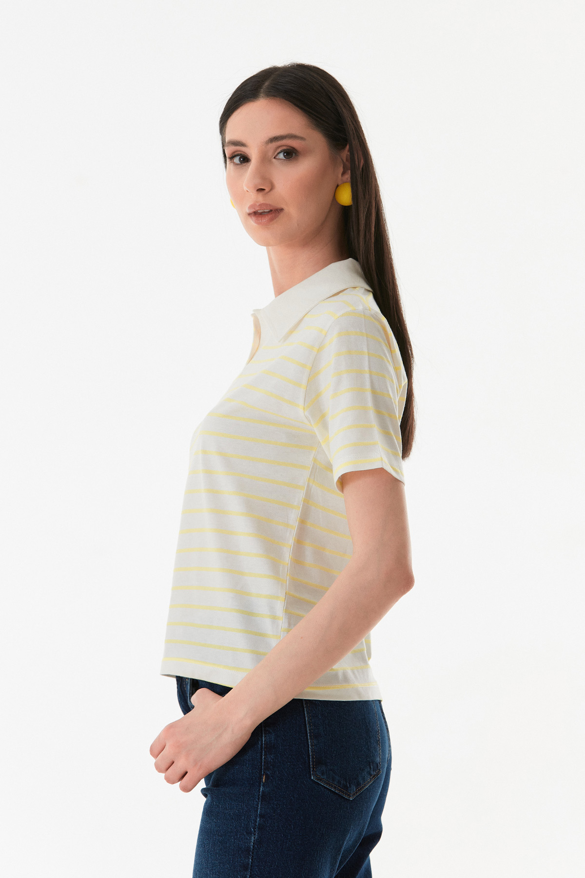 Çizgili Polo Yaka Tişört Çizgili Polo Yaka Tişört 25YGB4430127651 L
