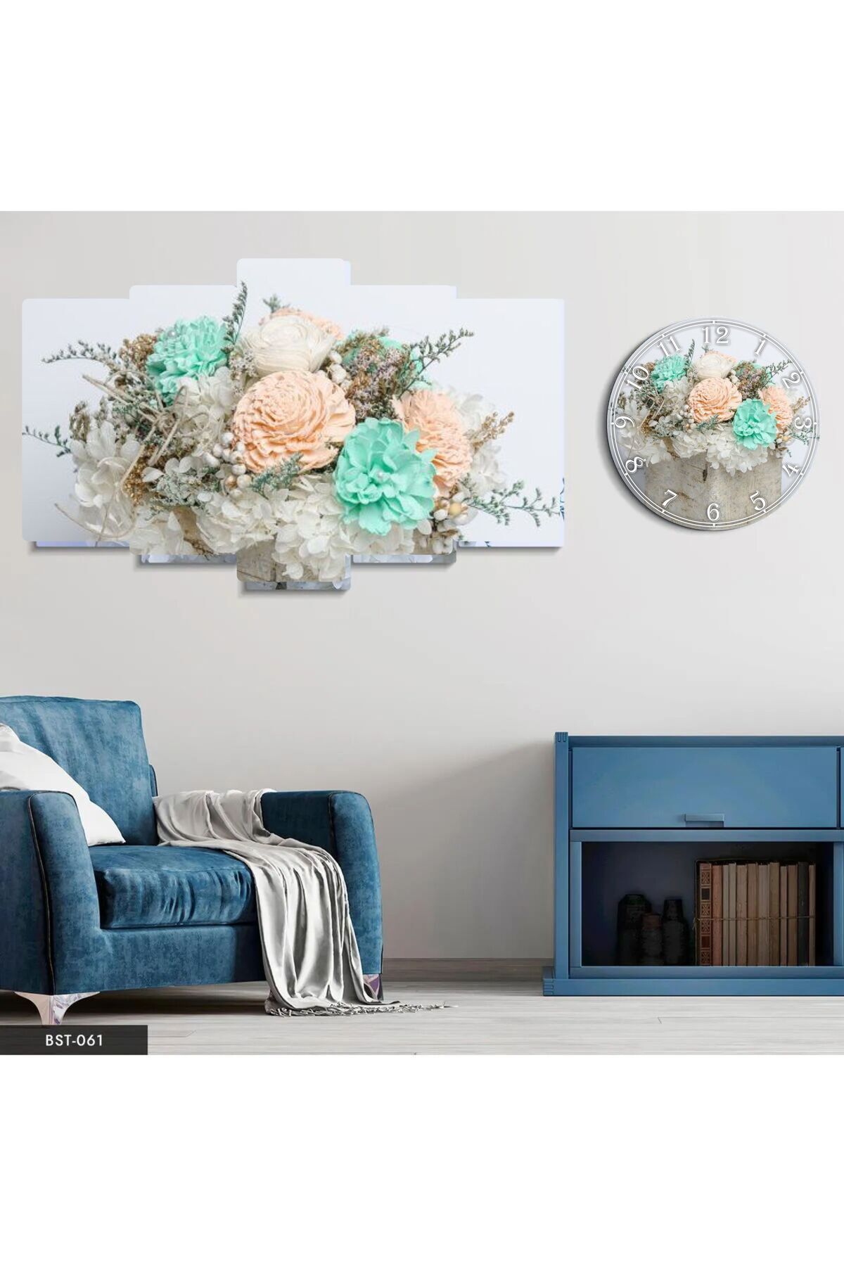 Çiçekli Manzaralı Dekoratif Desenli Mdf Tablo 5 Parça Set Ve saatli Çiçekli Manzaralı Dekoratif Desenli Mdf Tablo 5 Parça Set Ve saatli farksaattb1003 60 x 120
