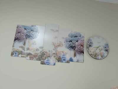 Çiçekli Manzaralı Dekoratif Desenli Mdf Tablo 5 Parça Set Ve saatli Çiçekli Manzaralı Dekoratif Desenli Mdf Tablo 5 Parça Set Ve saatli farksaattb1003 60 x 120