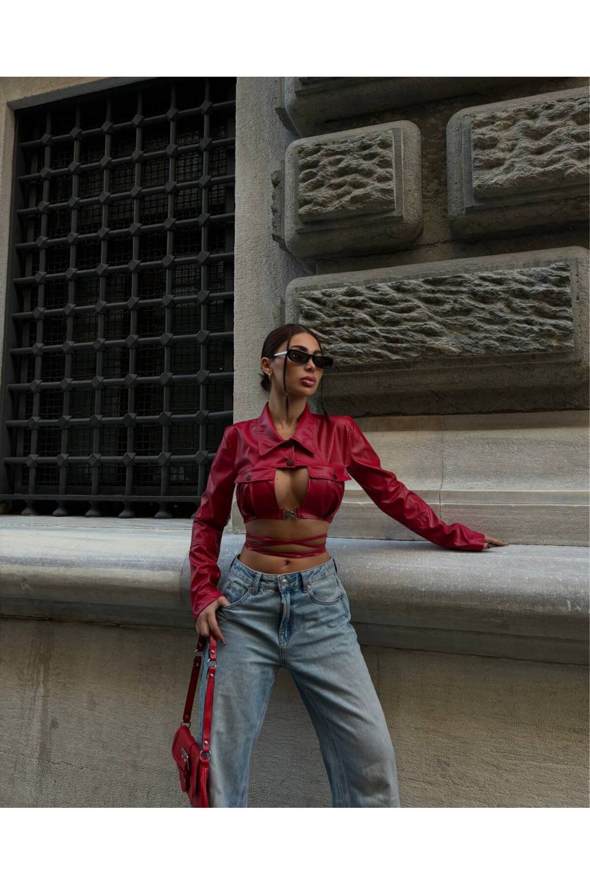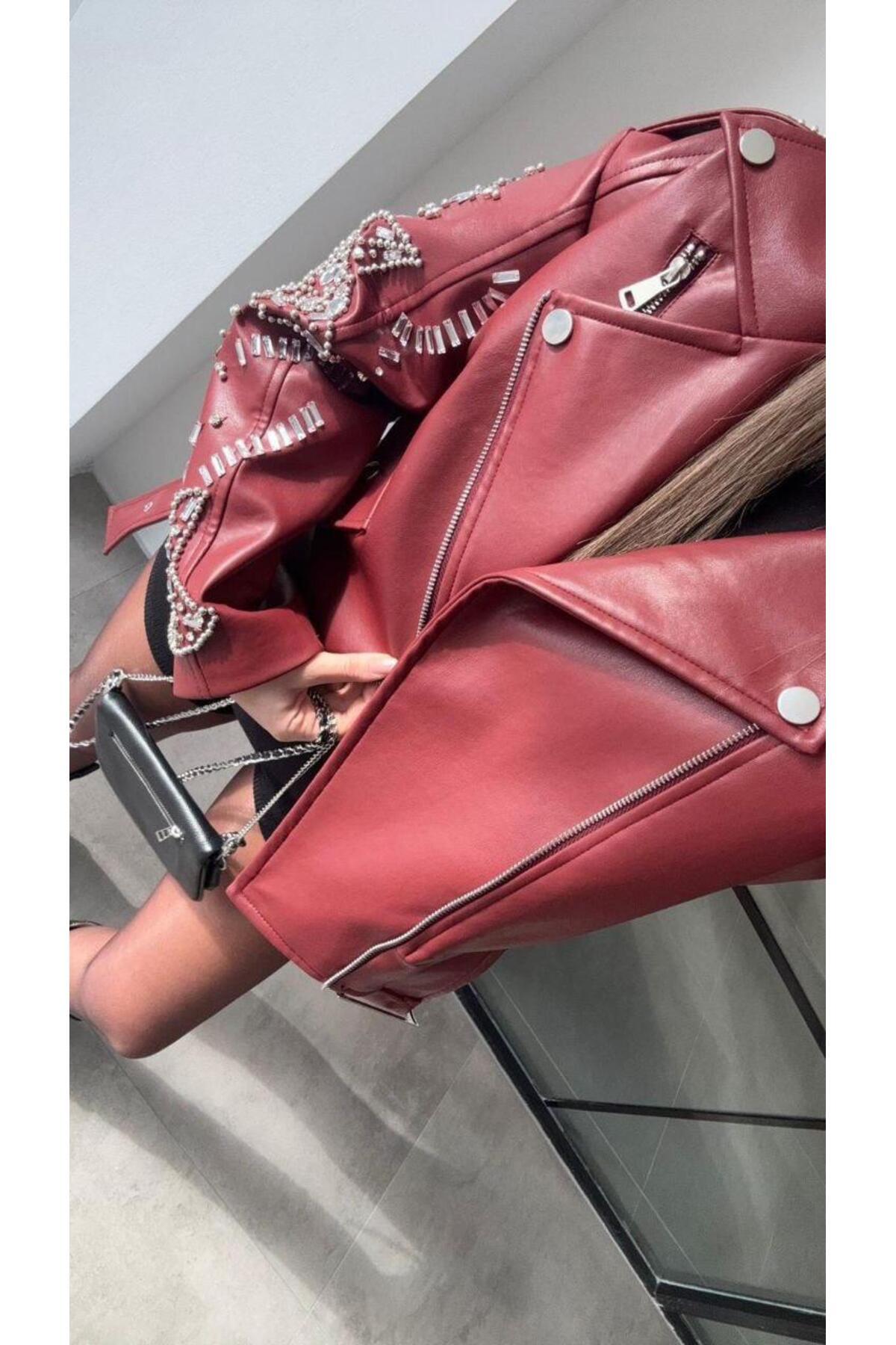 Özel Tasarım taş süslemeli Deri Ceket Özel Tasarım taş süslemeli Deri Ceket Missbeyoglu101 L