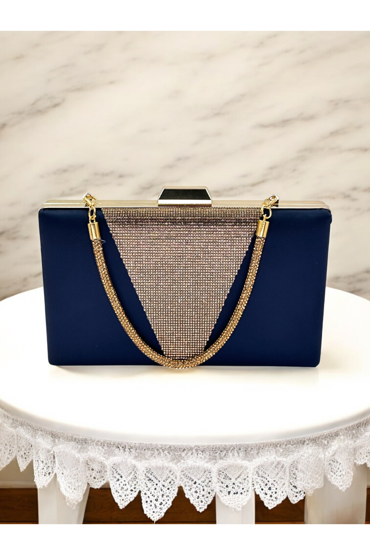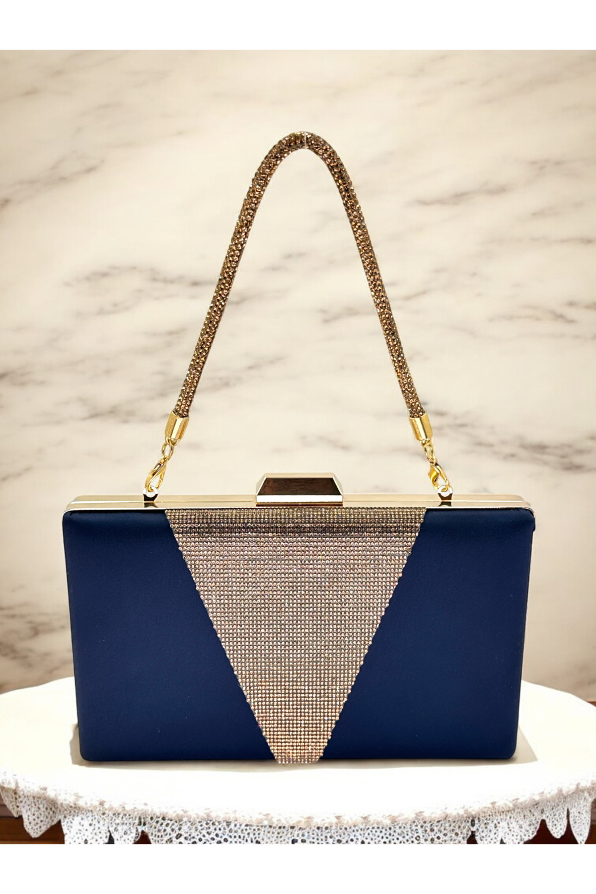 Lacivert Renk Saten Altın Renk Kristal Taşlı Saplı Kadın Abiye Çanta Düğün Mezuniyet Nişan Lacivert Renk Saten Altın Renk Kristal Taşlı Saplı Kadın Abiye Çanta Düğün Mezuniyet Nişan 135 TAŞ SAPLI V TAŞLI تک سایز