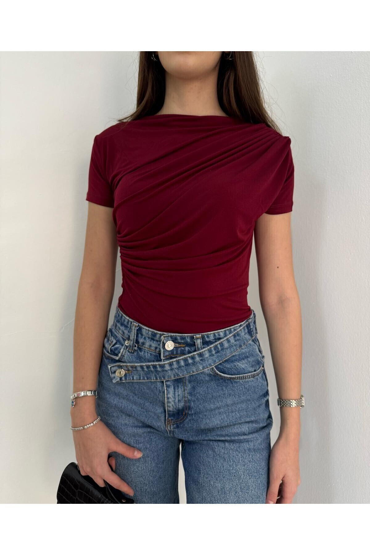 Kadın Bisiklet Yaka Ve Bel Büzgülü Sandy Kumaş Kısa Kollu Bluz Kadın Bisiklet Yaka Ve Bel Büzgülü Sandy Kumaş Kısa Kollu Bluz BÜZGÜLÜKISAKOLLU 2XL