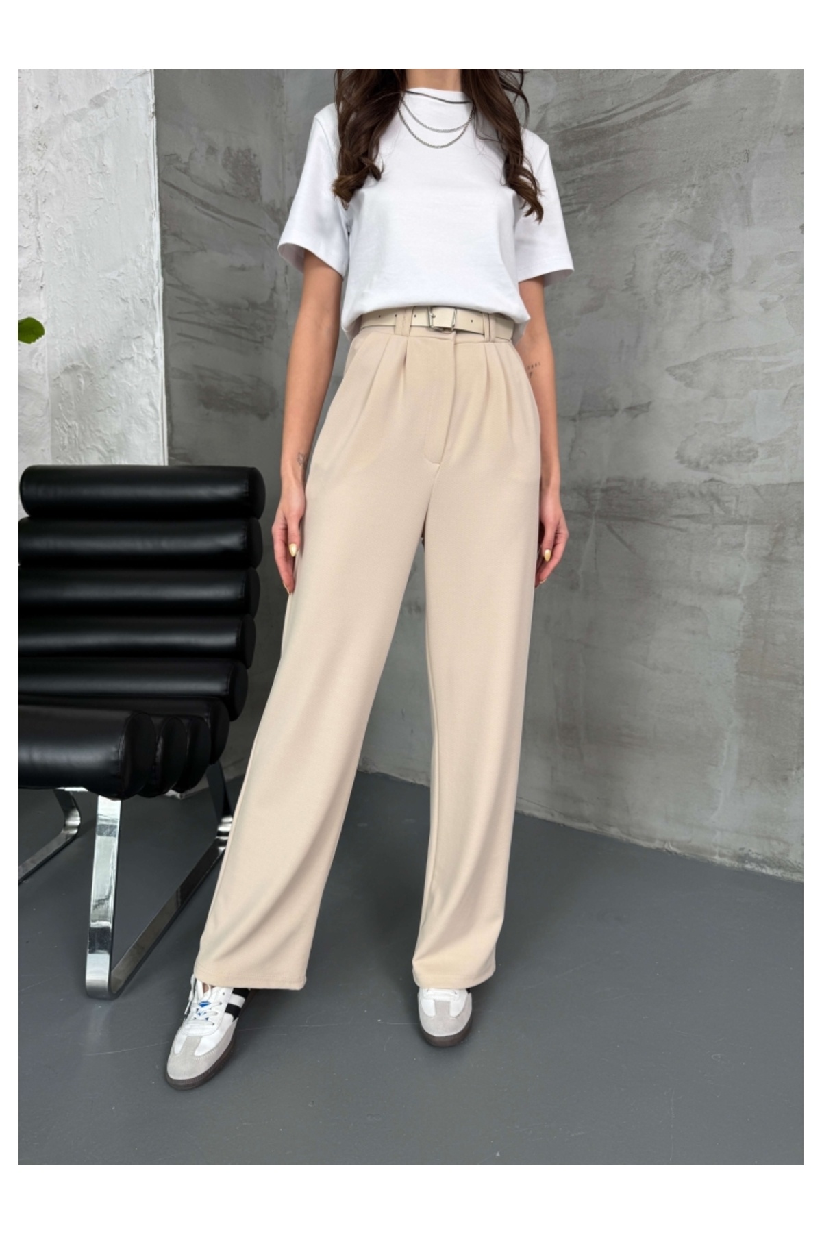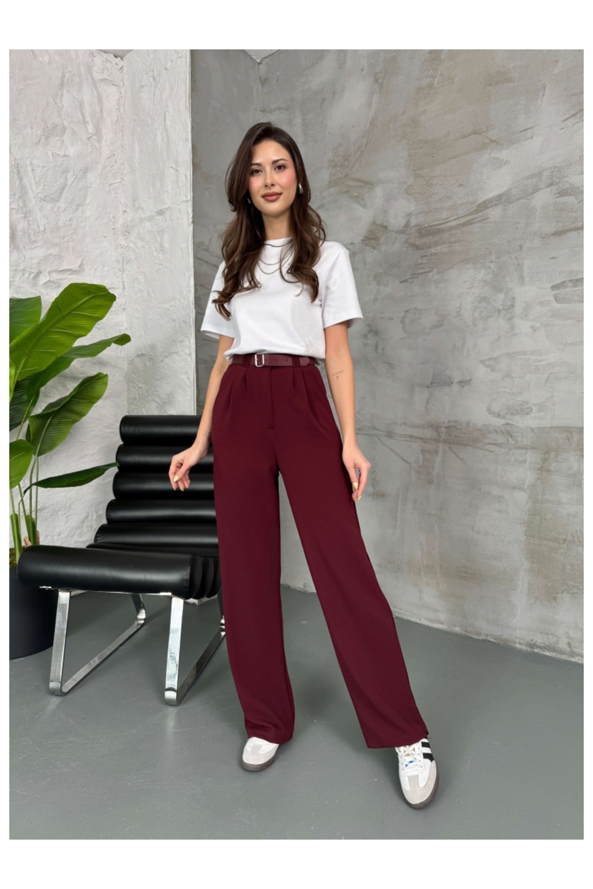 Bordo Çift Pileli Kemerli Pantolon Bordo Çift Pileli Kemerli Pantolon 3851 L