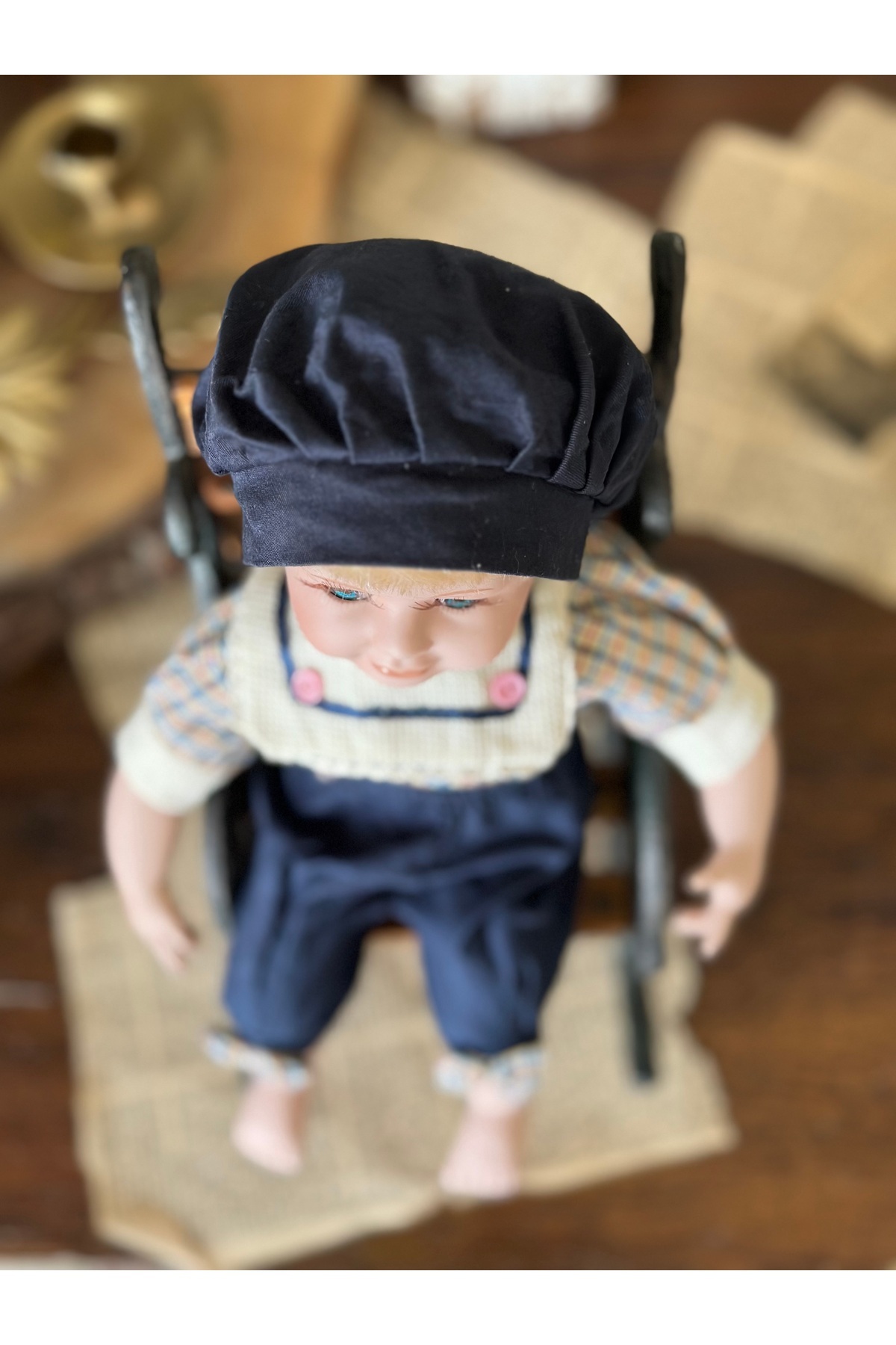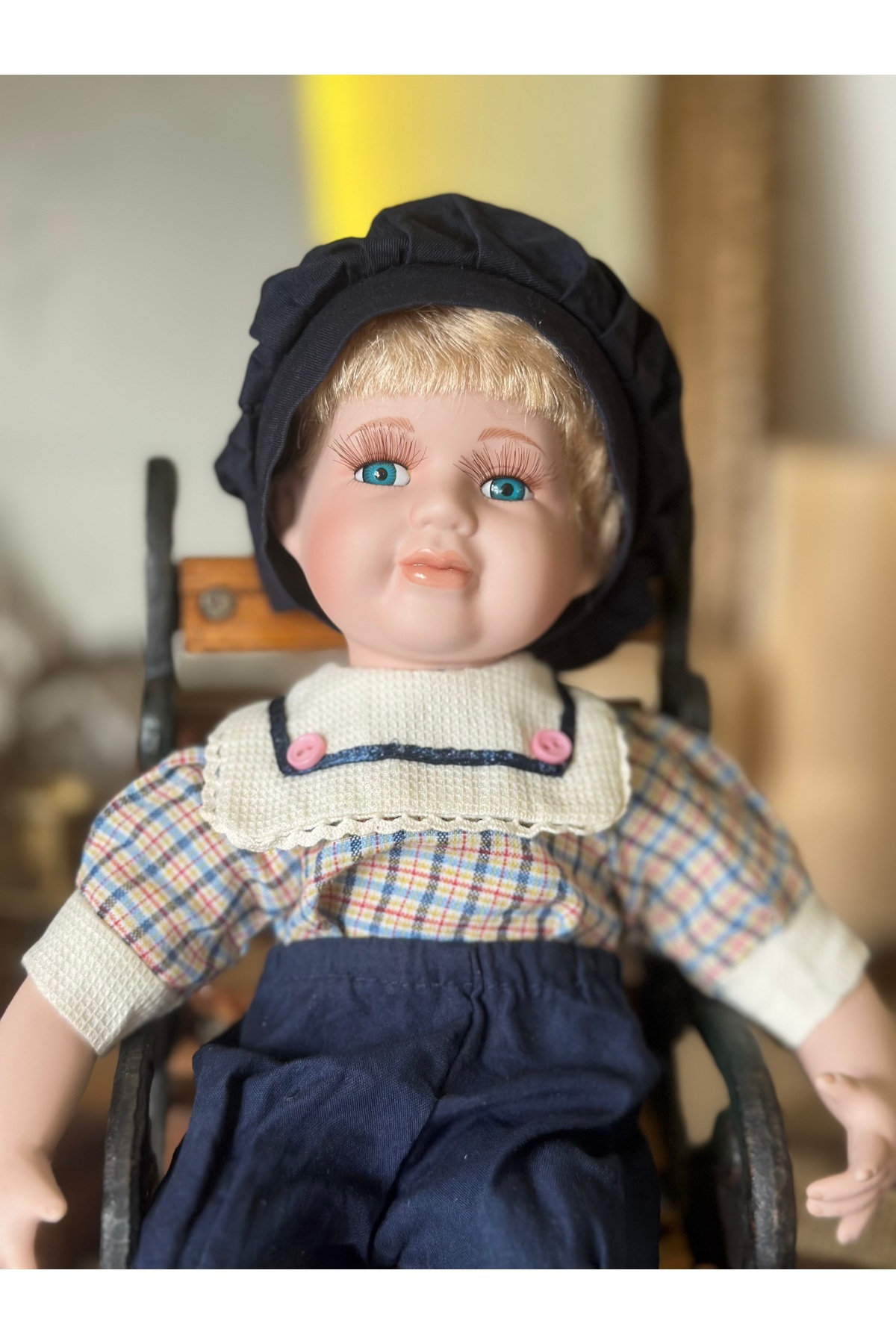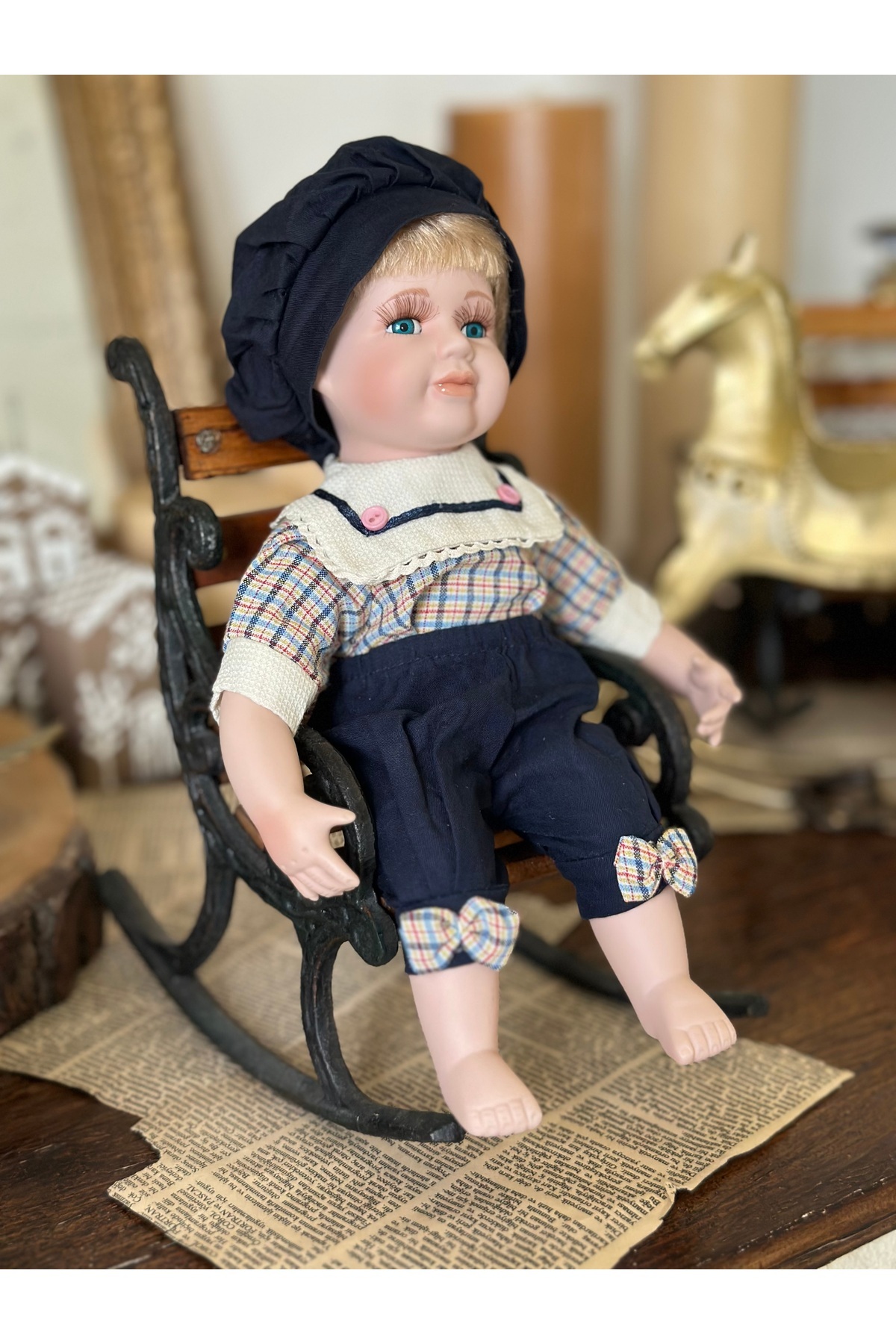 Koleksiyonluk Porselen Erkek Bebek Sarışın Oturan Şapkalı Lacivert Mavi Önlüklü Mavi Gözlü 30 cm Koleksiyonluk Porselen Erkek Bebek Sarışın Oturan Şapkalı Lacivert Mavi Önlüklü Mavi Gözlü 30 cm PBEBEK85 تک سایز