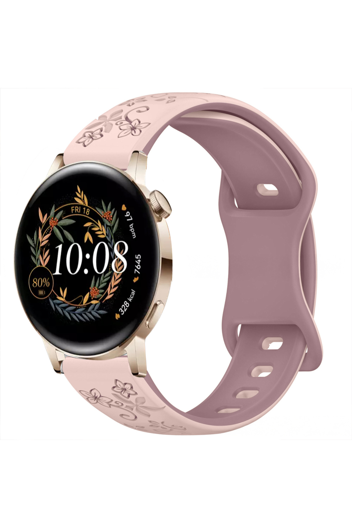 Huawei Watch GT2 GT3 42mm İle Uyumlu FloraFlex Çiçek Desenli Silikon Kordon Huawei Watch GT2 GT3 42mm İle Uyumlu FloraFlex Çiçek Desenli Silikon Kordon SNWS-CICEKLI-20MM-01 تک سایز