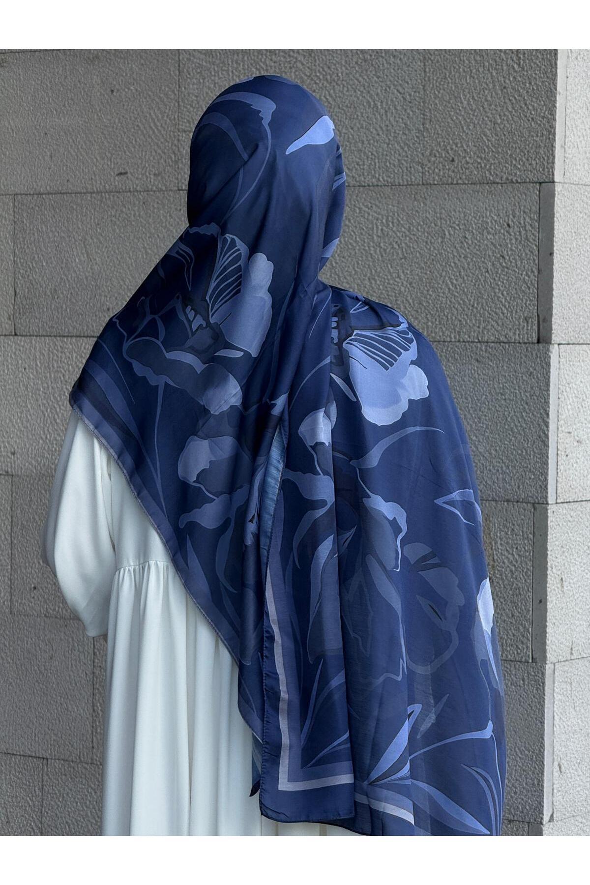 Pamuklu Mimoza Desen Şal-Lacivert/Kahve Pamuklu Mimoza Desen Şal-Lacivert/Kahve mimoza 75 x 185