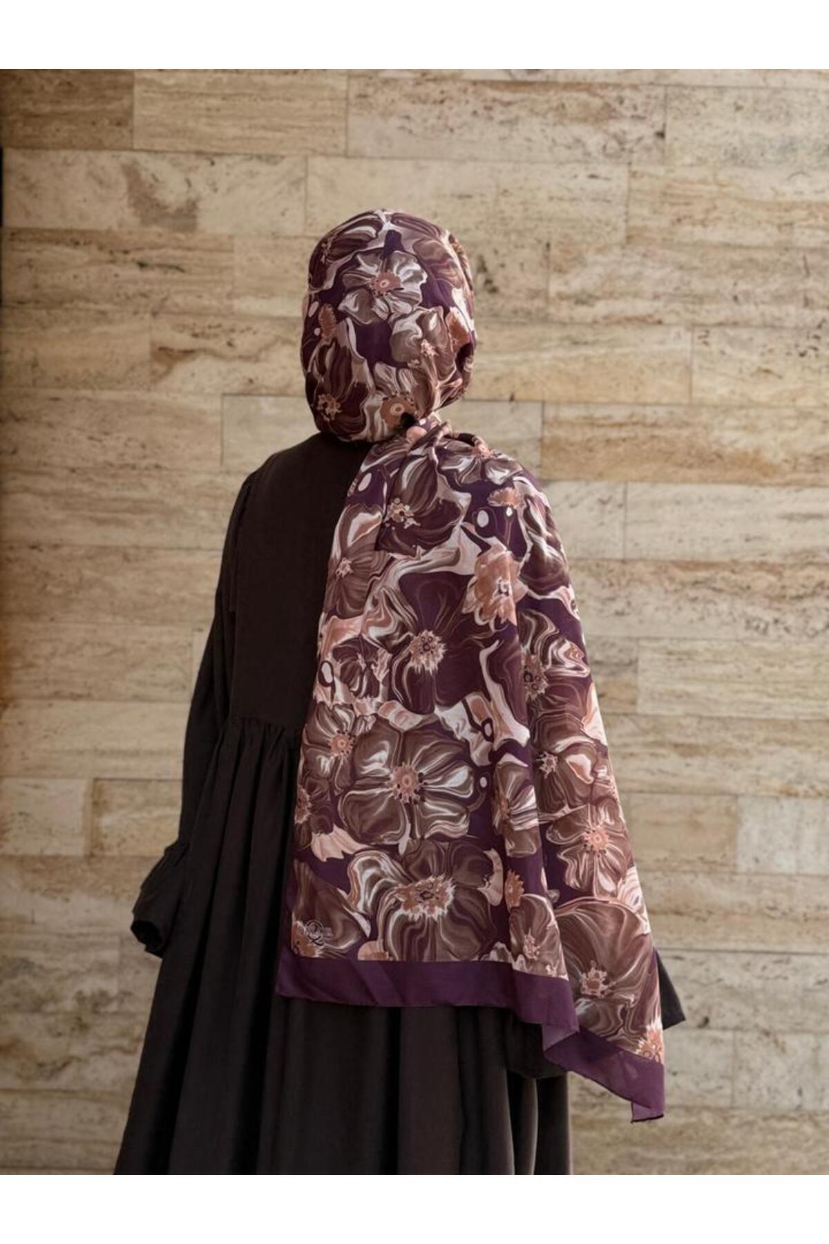 Pamuklu Mimoza Desen Şal- Mürdüm Pamuklu Mimoza Desen Şal- Mürdüm mimoza 75 x 185