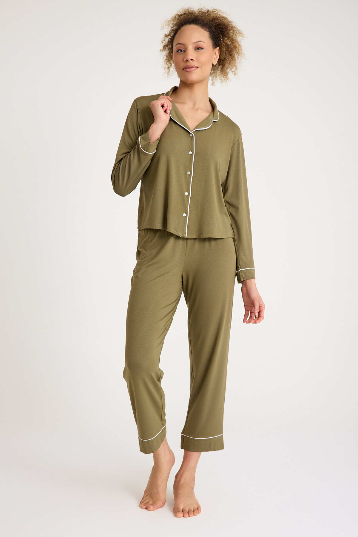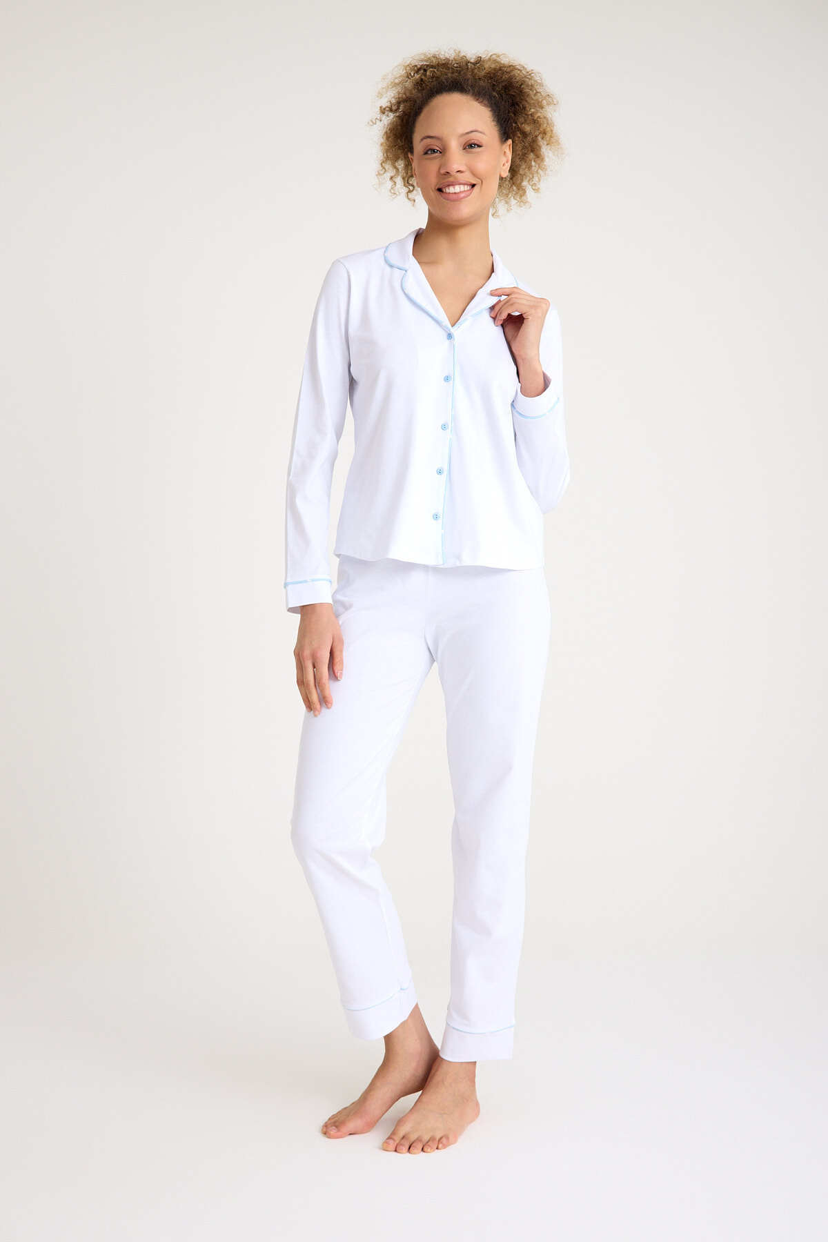 Ekru %95 Pamuk %5 Elestan Beyaz Renk Biyeli Premium Kalite Kadın Pijama Takımı Ekru %95 Pamuk %5 Elestan Beyaz Renk Biyeli Premium Kalite Kadın Pijama Takımı NO52-2025-KPJM-TK XL