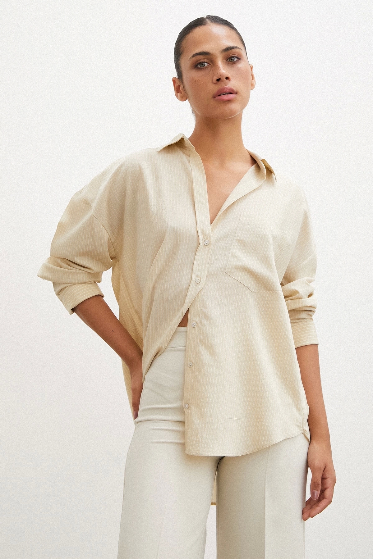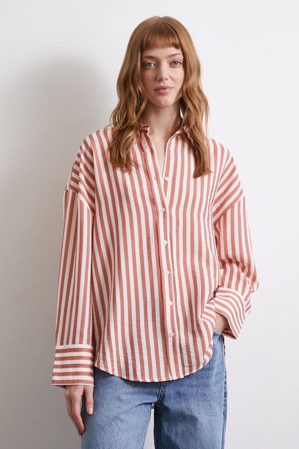 Çizgili T Kol Gömlek Kiremit Çizgili T Kol Gömlek Kiremit NM25S103001 L