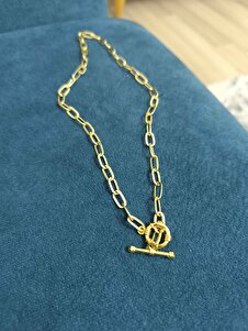 Kadın T Kilit Gold Renk Ataç Kolye Kadın T Kilit Gold Renk Ataç Kolye 40710634 M