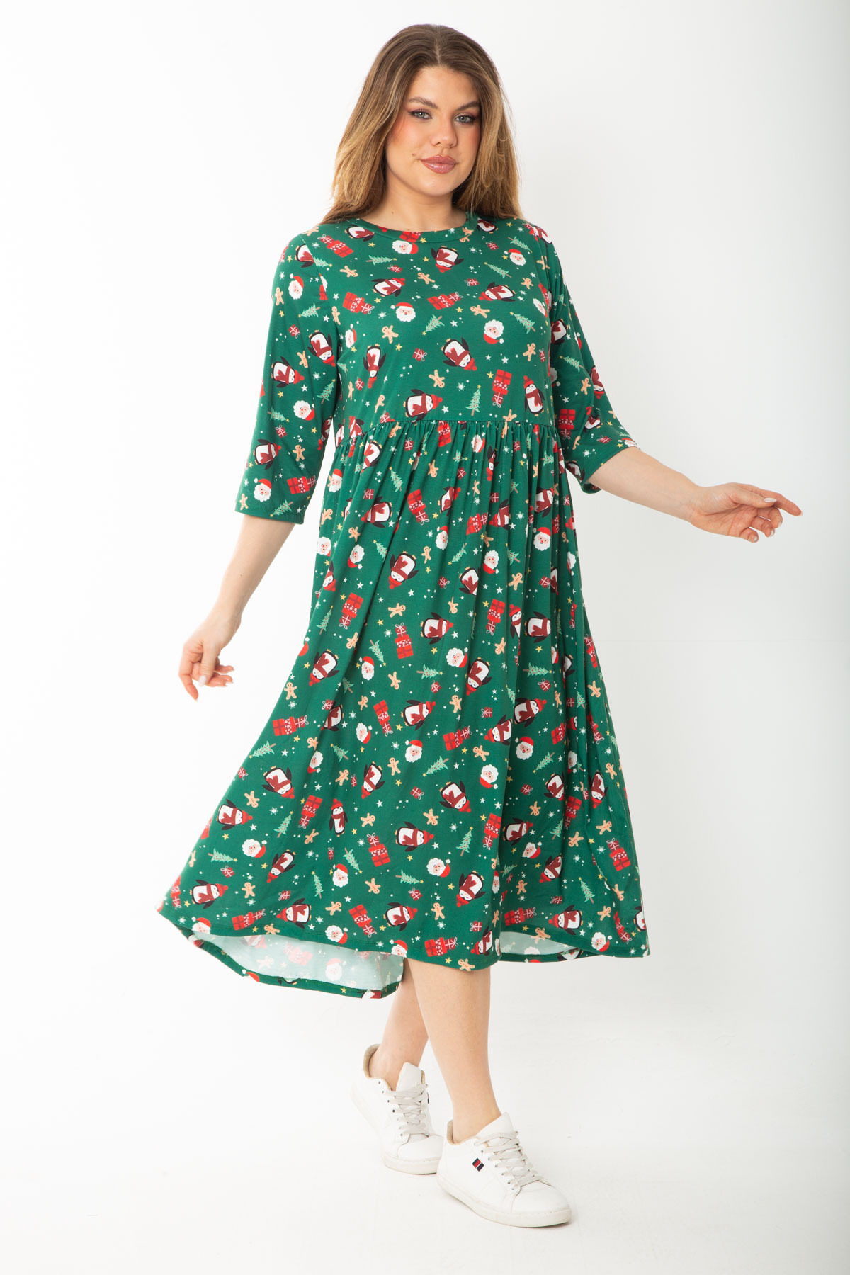 Büyük Beden Beli Büzgülü Çiçekli Uzun Kol Elbise Büyük Beden Beli Büzgülü Çiçekli Uzun Kol Elbise 25YSL7599 48