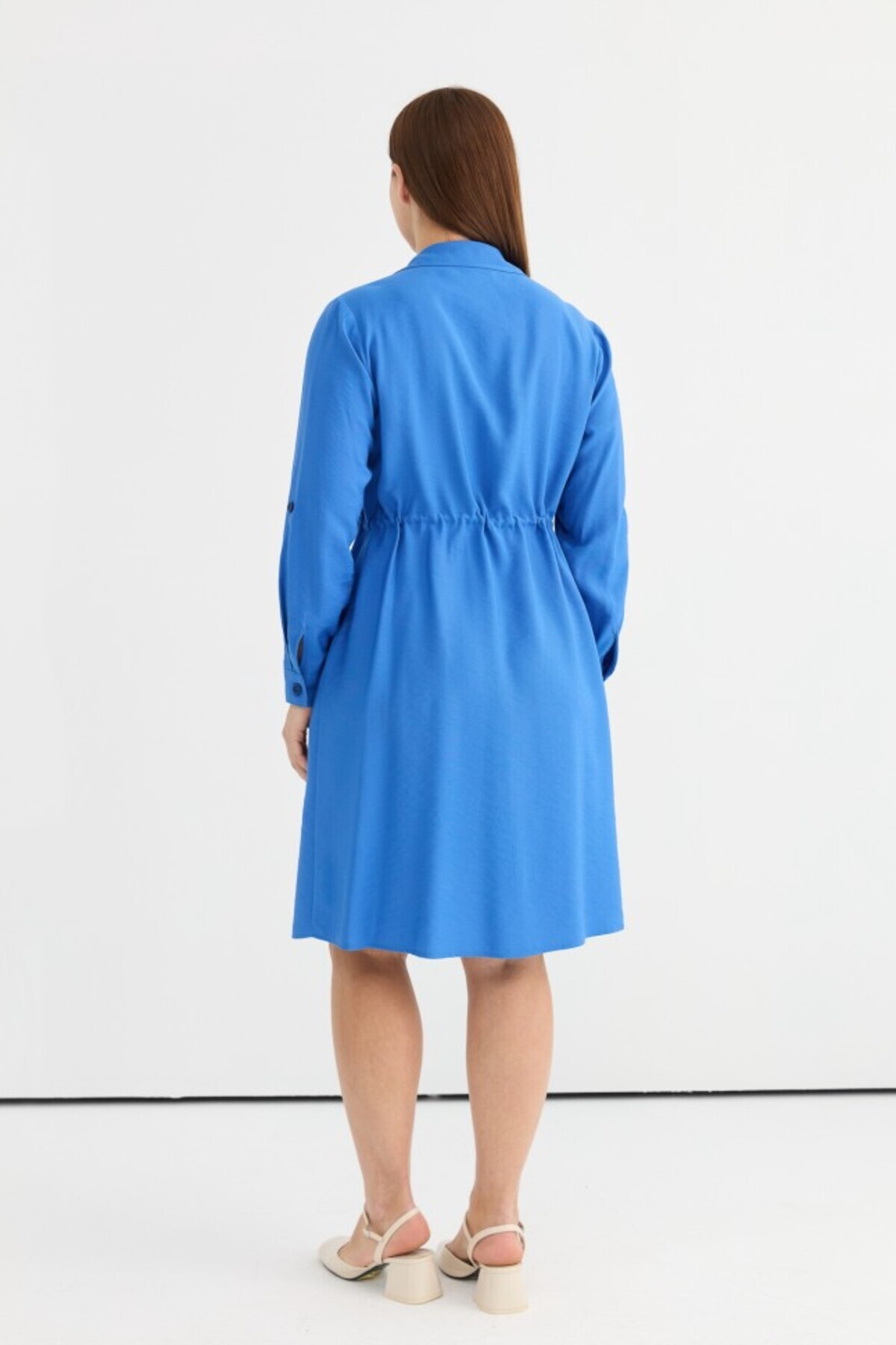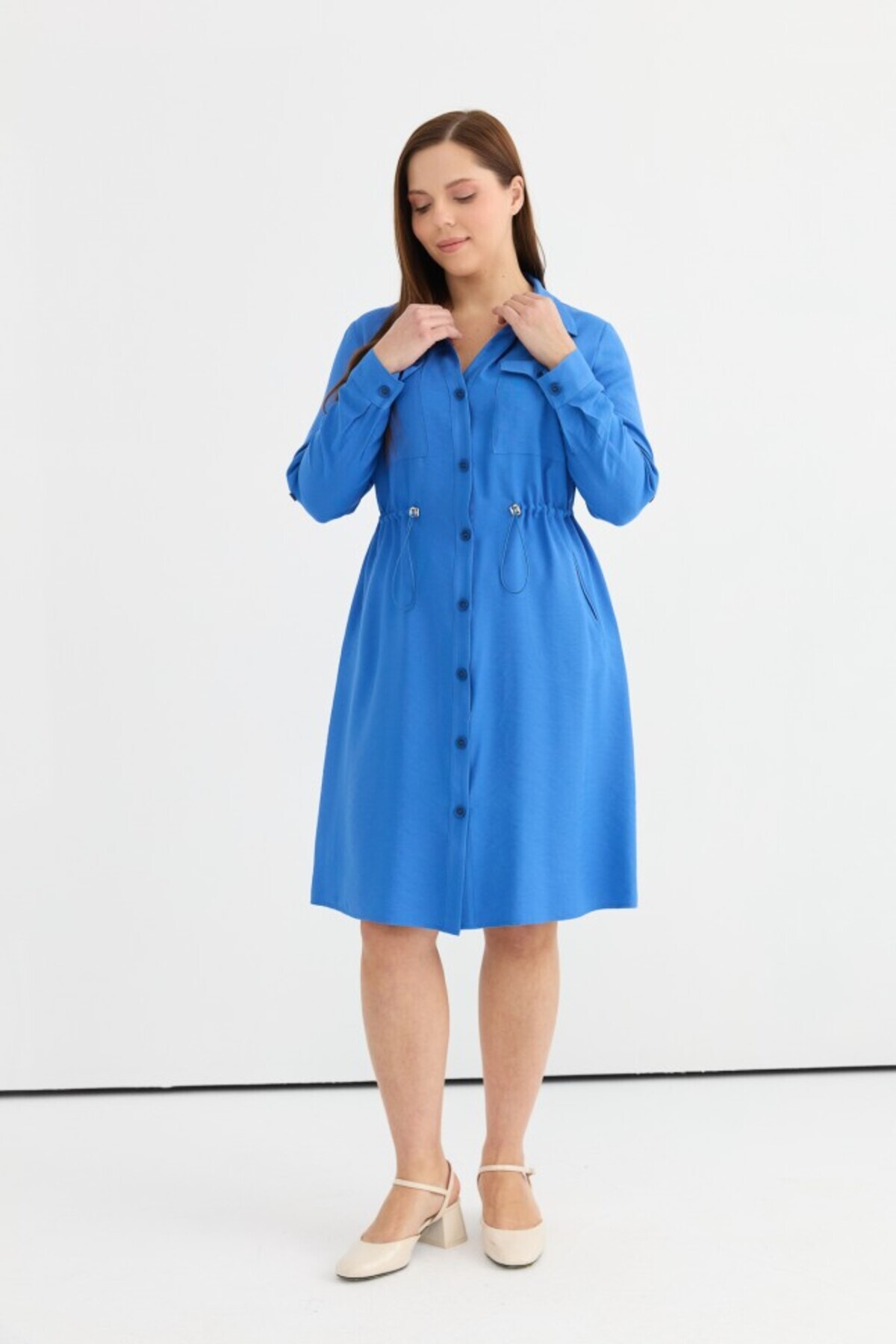 Büyük Beden Beli Büzgülü Dıştan Cep Gömlek Elbise Büyük Beden Beli Büzgülü Dıştan Cep Gömlek Elbise 25YSL7570 48