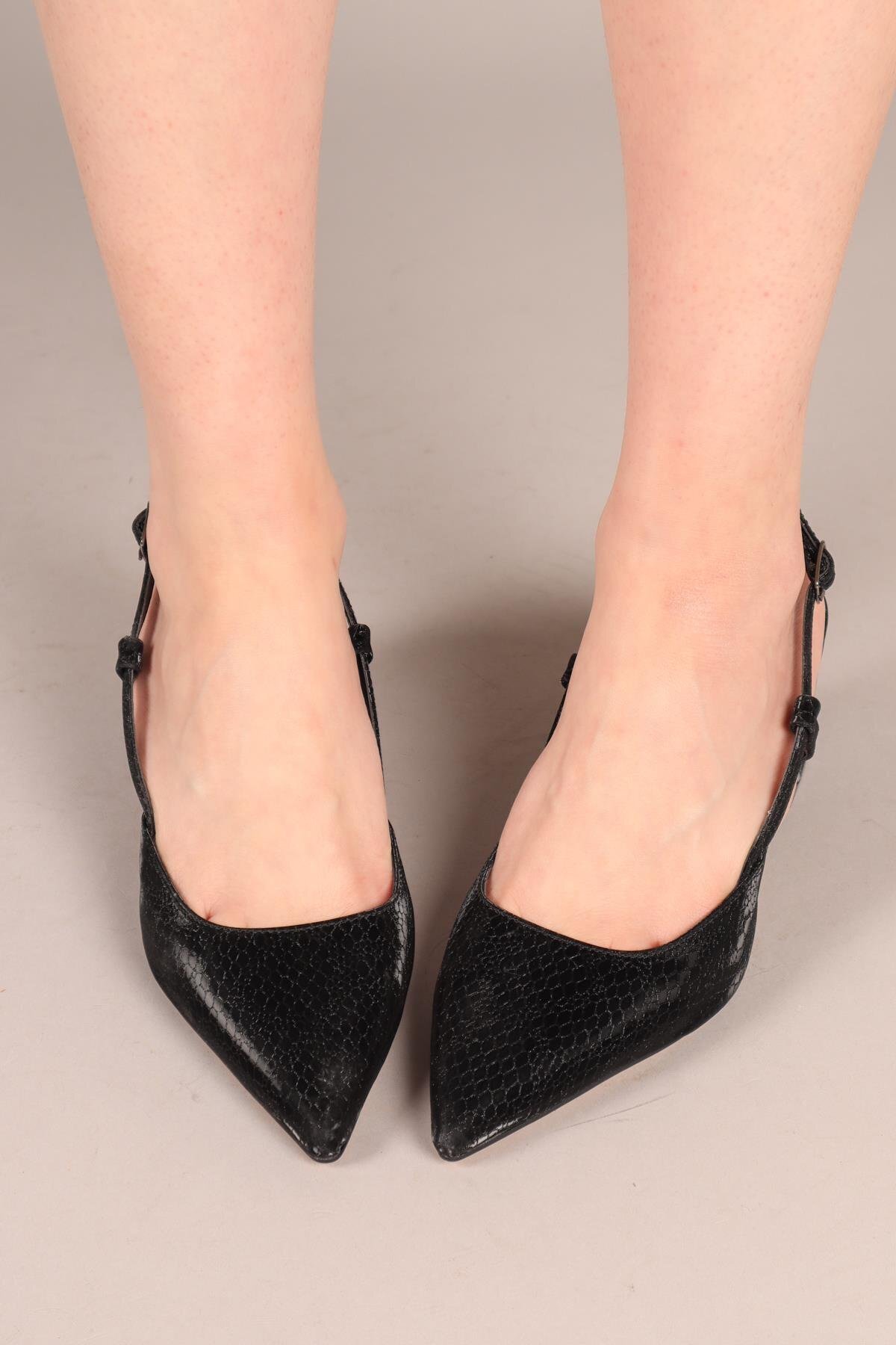 ROSELLA Yılan Derisi Alçak Topuklu Stiletto SİYAH ROSELLA Yılan Derisi Alçak Topuklu Stiletto SİYAH 5475 40