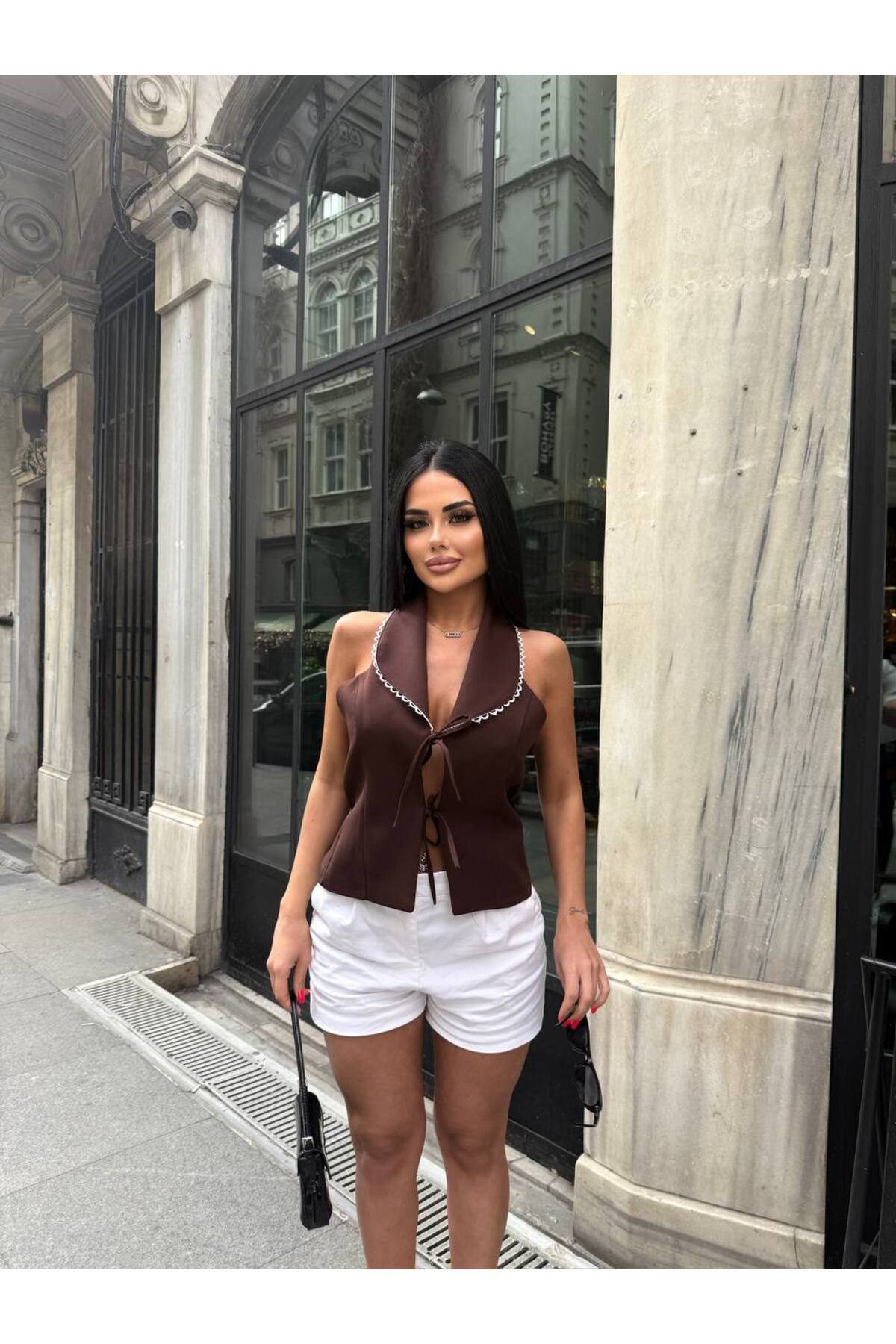Kadın Yaka Detaylı Bağlamalı Yelek Kadın Yaka Detaylı Bağlamalı Yelek FM25067 L
