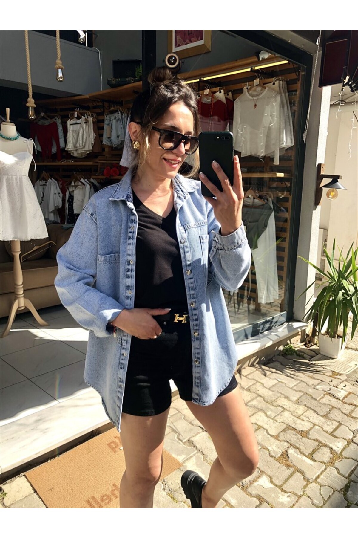 KADIN TAŞLANMIŞ MAVİ RENK ÇITÇIT KAPAMALI JEAN KOT GÖMLEK CEKET KADIN TAŞLANMIŞ MAVİ RENK ÇITÇIT KAPAMALI JEAN KOT GÖMLEK CEKET GZD-JEANGÖMCE L