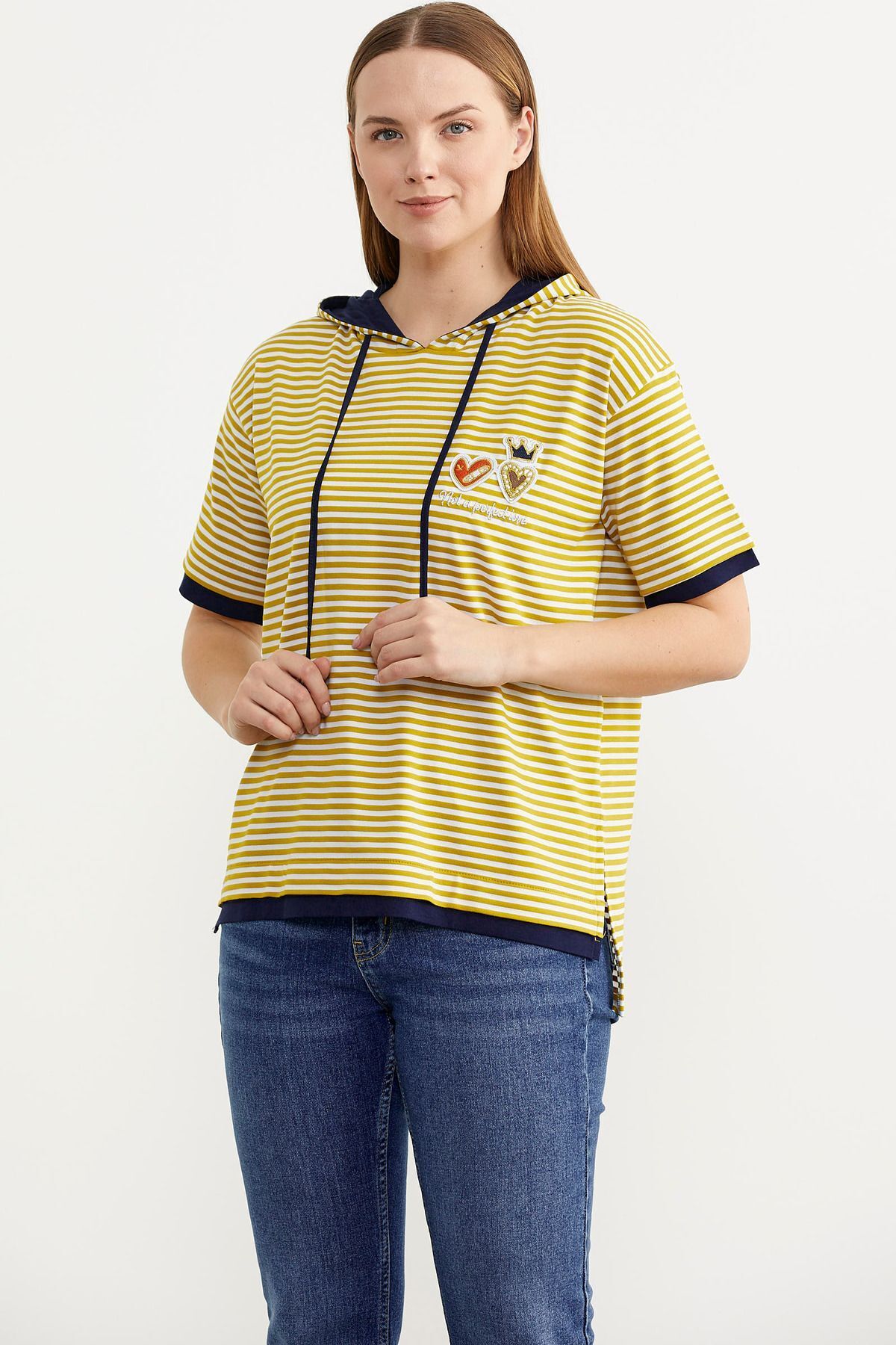 Kapüşonlu Renk Kombinli Çizgili Tişört - Yeşil Kapüşonlu Renk Kombinli Çizgili Tişört - Yeşil 24Y2231-75953.0001 2XL