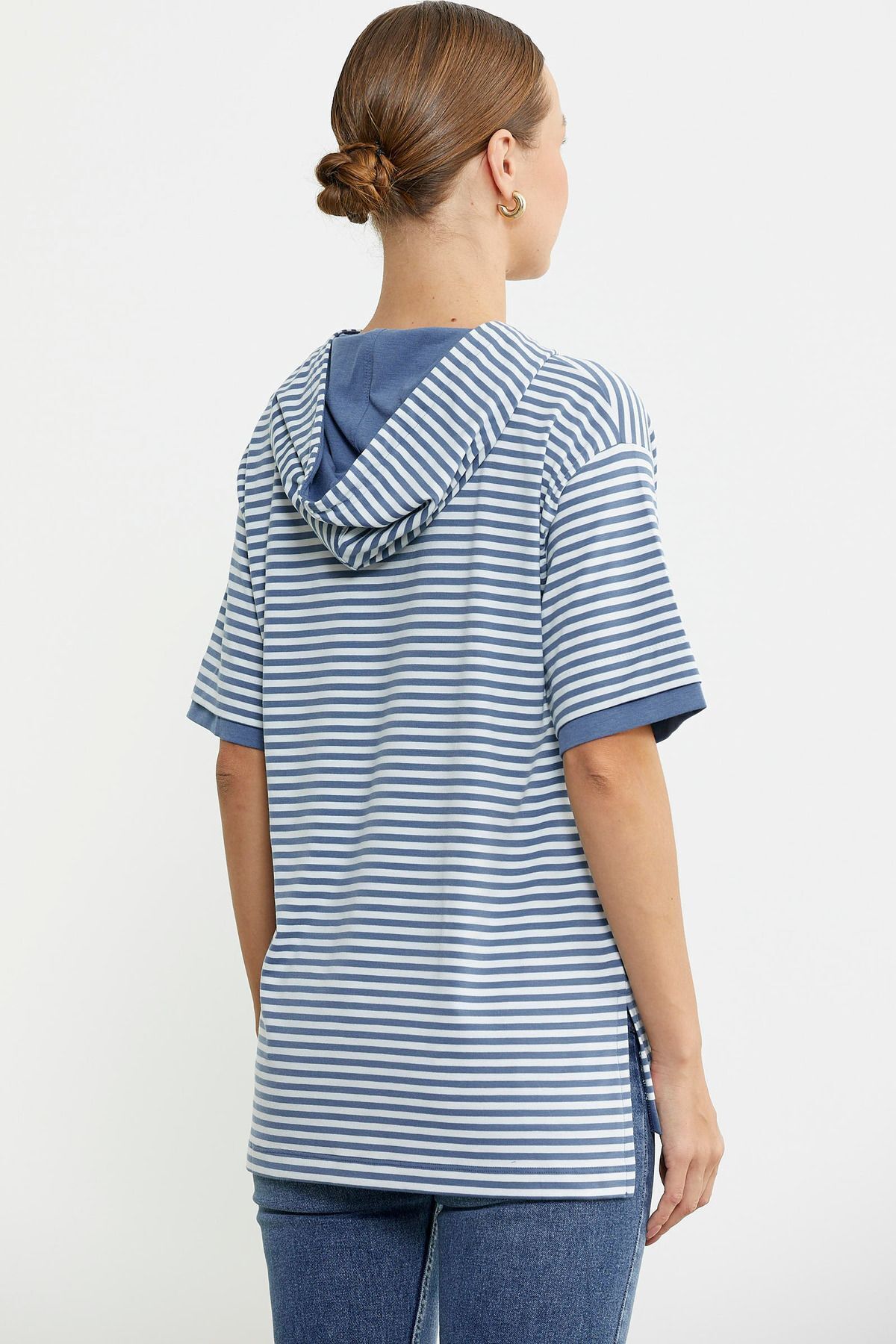 Kapüşonlu Renk Kombinli Çizgili Tişört - Indigo Kapüşonlu Renk Kombinli Çizgili Tişört - Indigo 24Y2231-75953.0001 2XL
