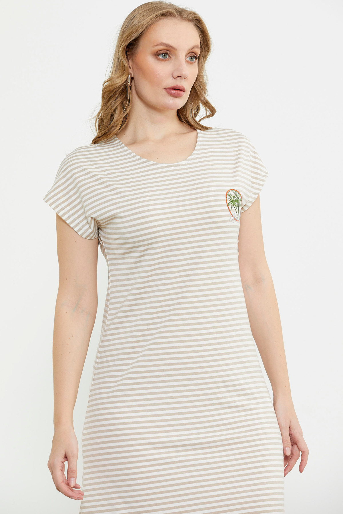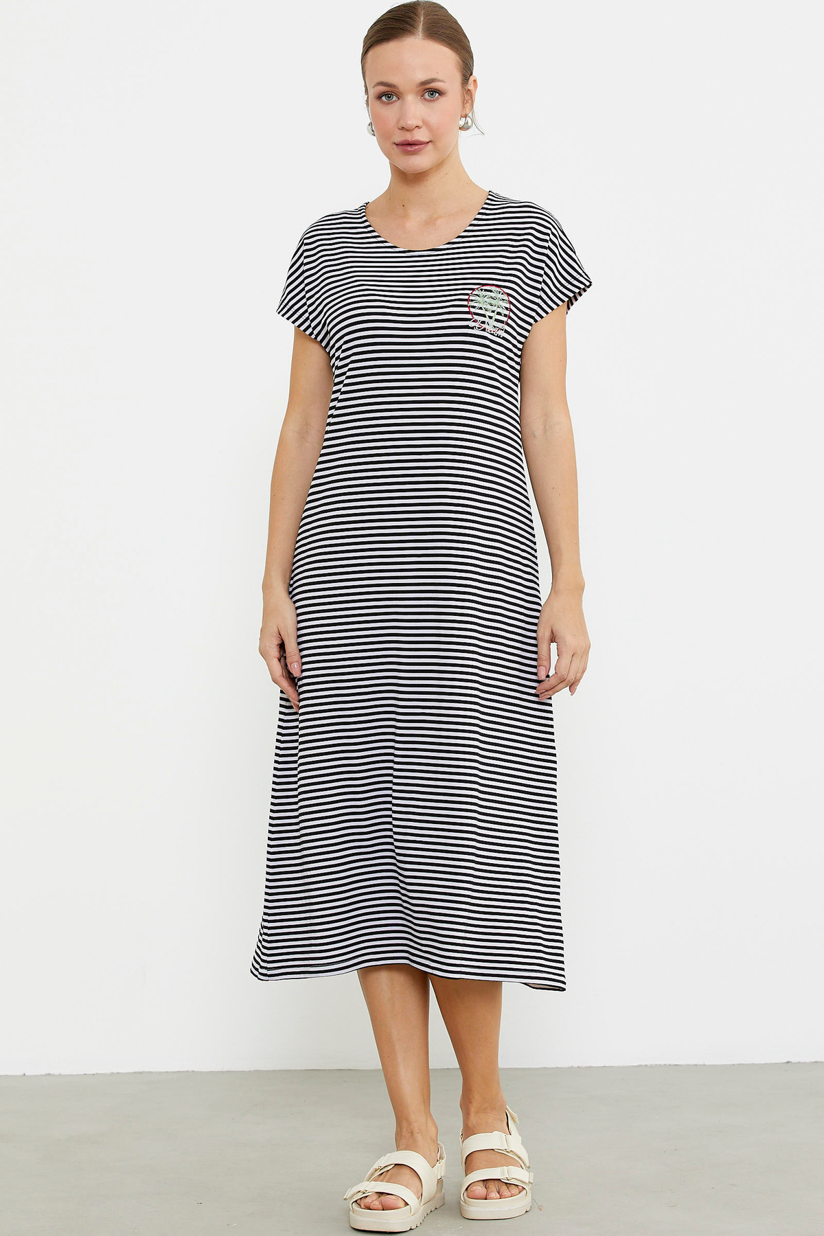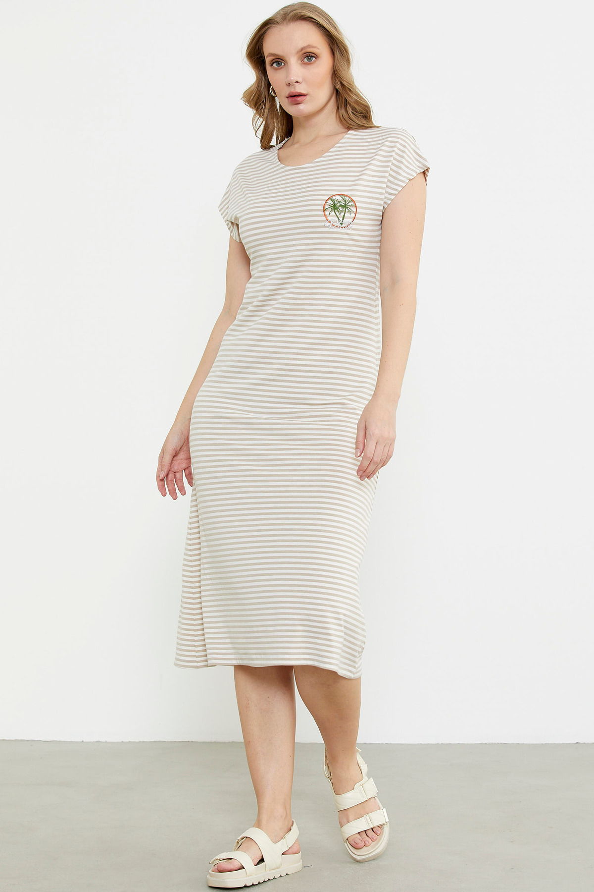 Nakış Detaylı Marine Penye Elbise - Kahve Nakış Detaylı Marine Penye Elbise - Kahve 25Y2206-77489.0001 2XL