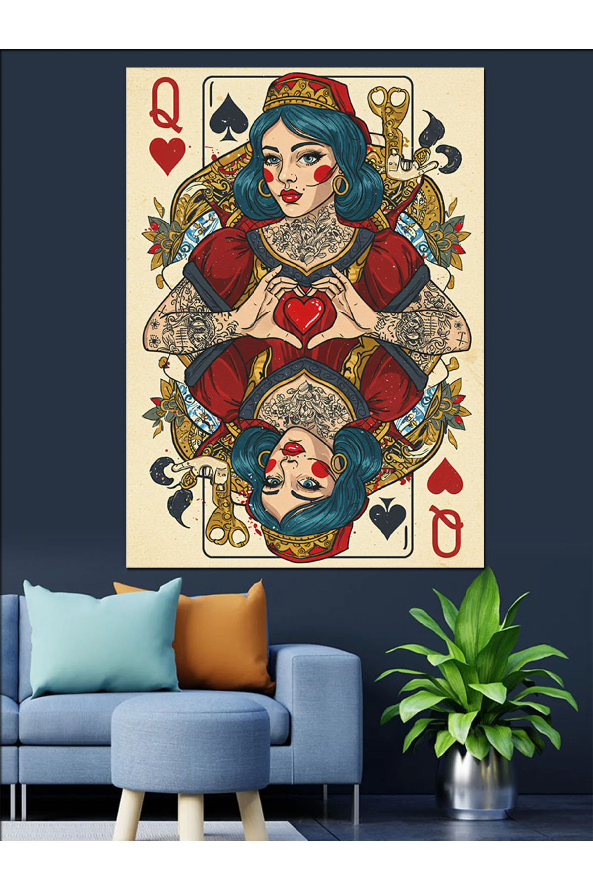 Oyun Kartı Ve Kraliçe Figürü Dekoratif Kanvas - Mdf Ahşap Tablo Oyun Kartı Ve Kraliçe Figürü Dekoratif Kanvas - Mdf Ahşap Tablo DKEEY140212 100 x 140