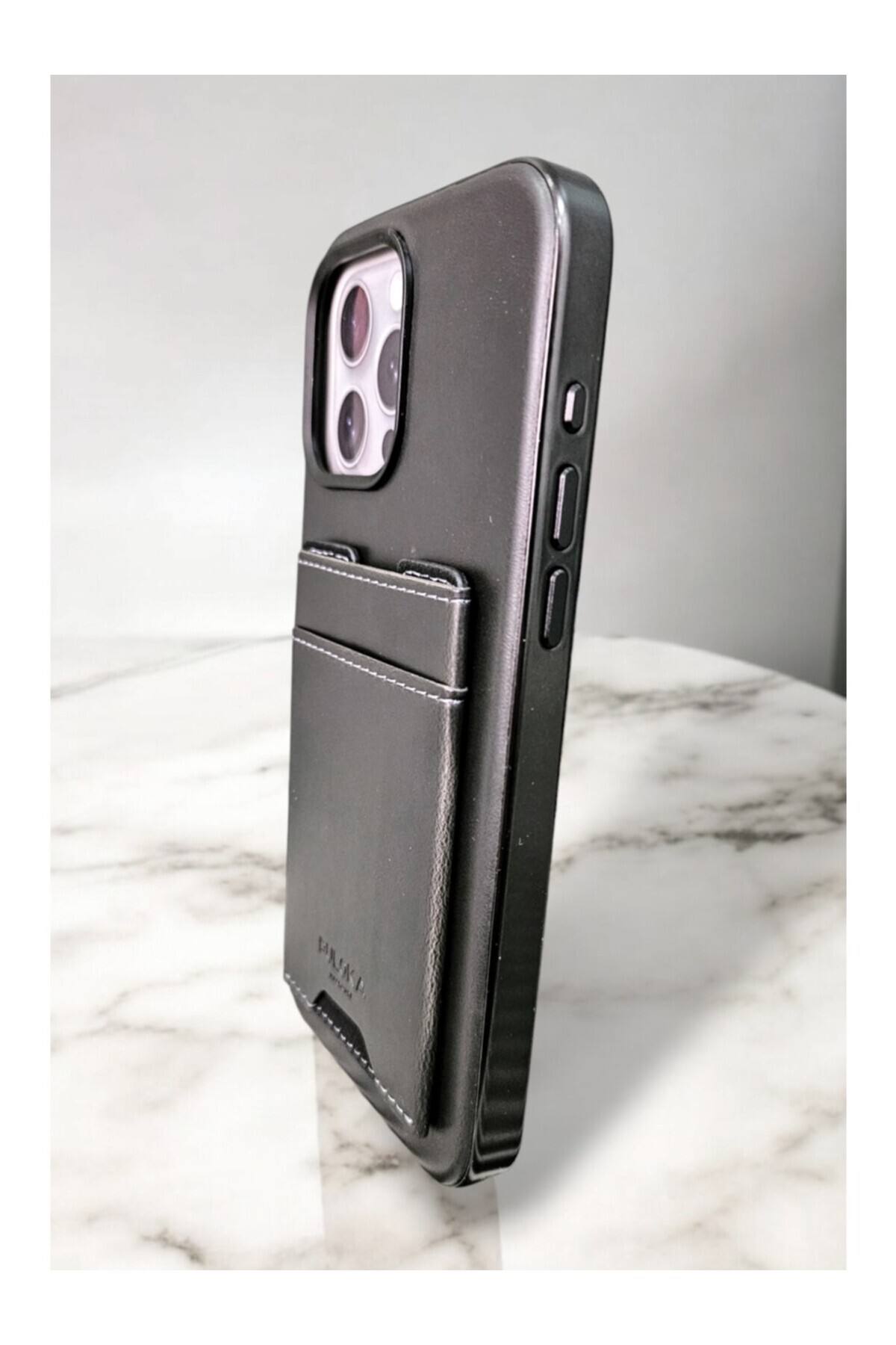 iPhone 15 Pro Max Uyumlu Suni Deri Premium Kartlıklı Siyah Kılıf iPhone 15 Pro Max Uyumlu Suni Deri Premium Kartlıklı Siyah Kılıf PLK15PROMAXSYH تک سایز
