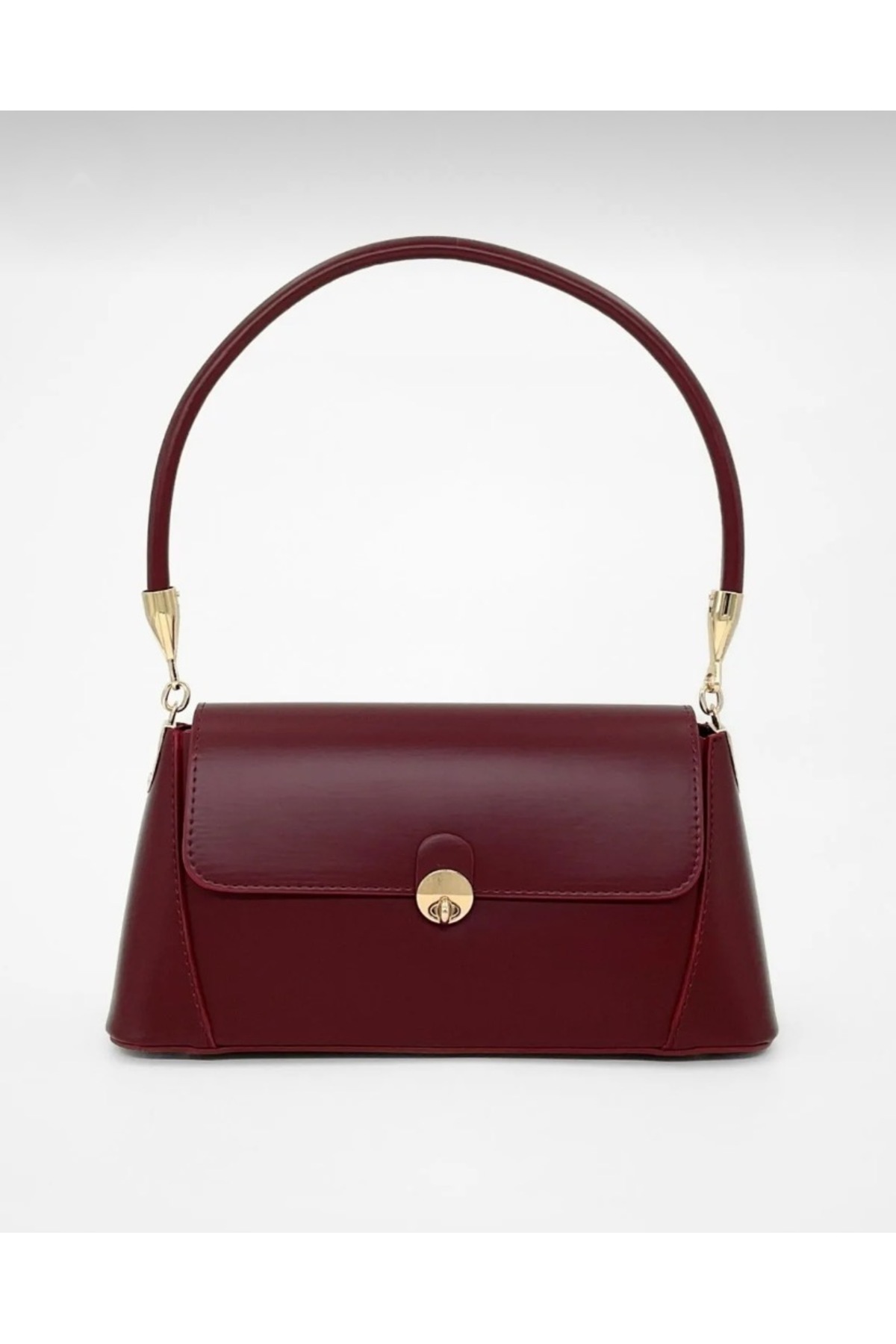 Kadın Deri Kilit Detaylı El ve Omuz Çantası - Bordo Kadın Deri Kilit Detaylı El ve Omuz Çantası - Bordo CT-33 Standart