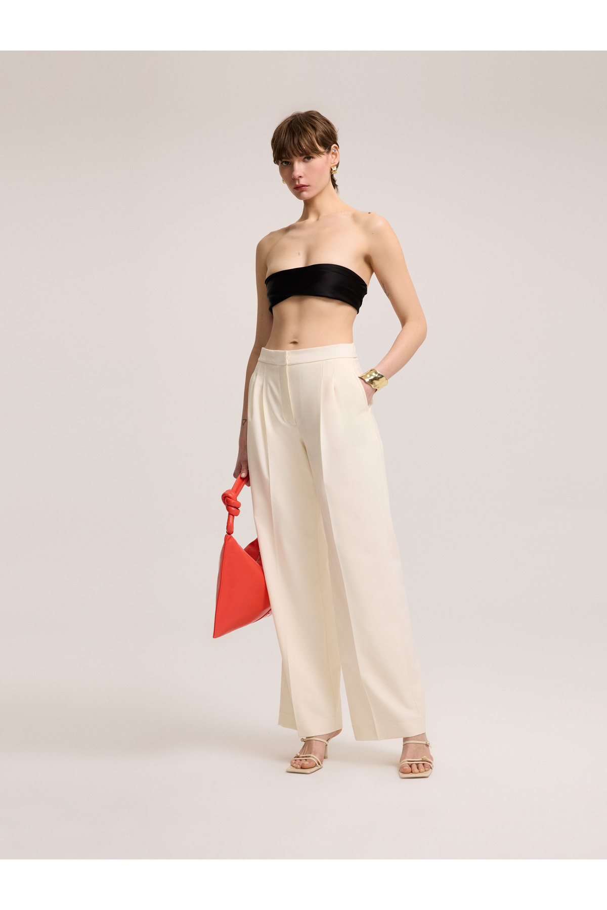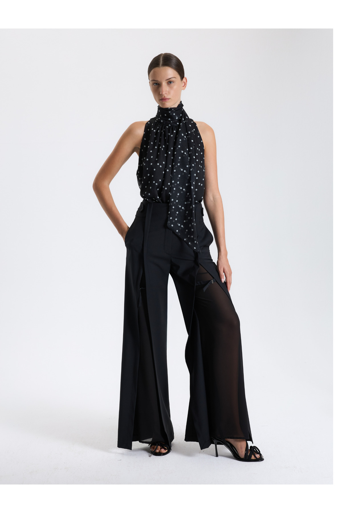 Paça Dantel Detaylı Siyah Pantolon Paça Dantel Detaylı Siyah Pantolon QS2542055 4