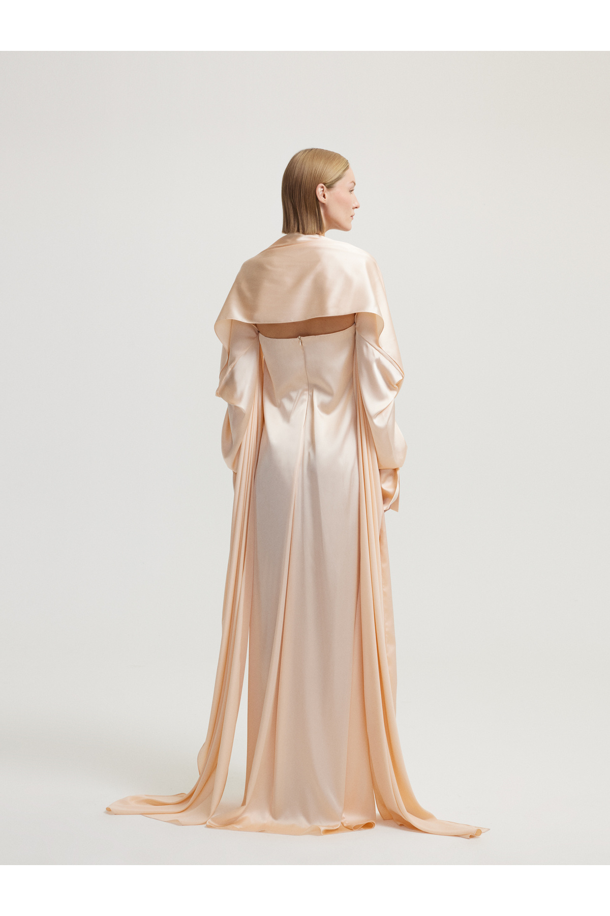 Şal Detay Pudra Renk Elbise Şal Detay Pudra Renk Elbise QS2545123 4