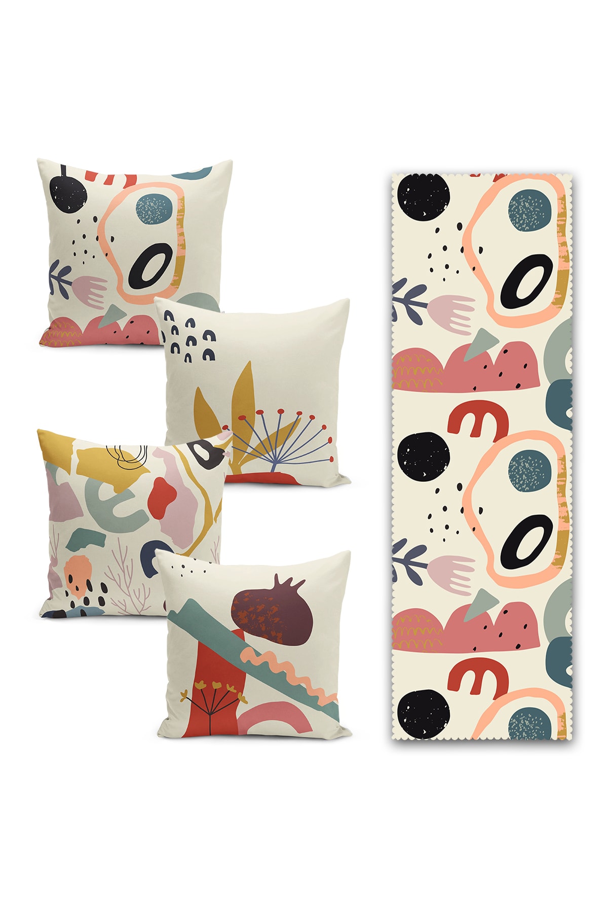 Pembe Mavi Modern Çiçek Desenli 4'lü Kırlent Kılıfı ve Runner Seti Pembe Mavi Modern Çiçek Desenli 4'lü Kırlent Kılıfı ve Runner Seti EA1101-RNSET4 50 x 50