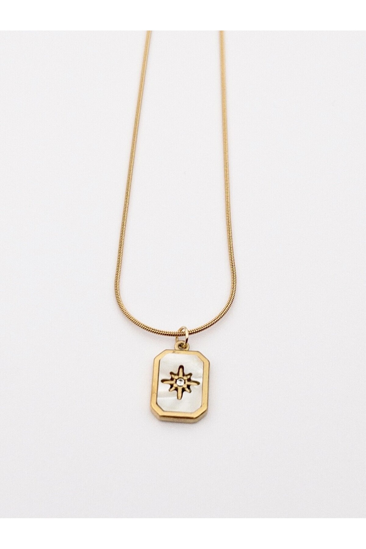 Oval Beyaz Sedefli Yılan Zincirli Kararmaz Çelik Kolye Oval Beyaz Sedefli Yılan Zincirli Kararmaz Çelik Kolye SYKLY1403 45 cm