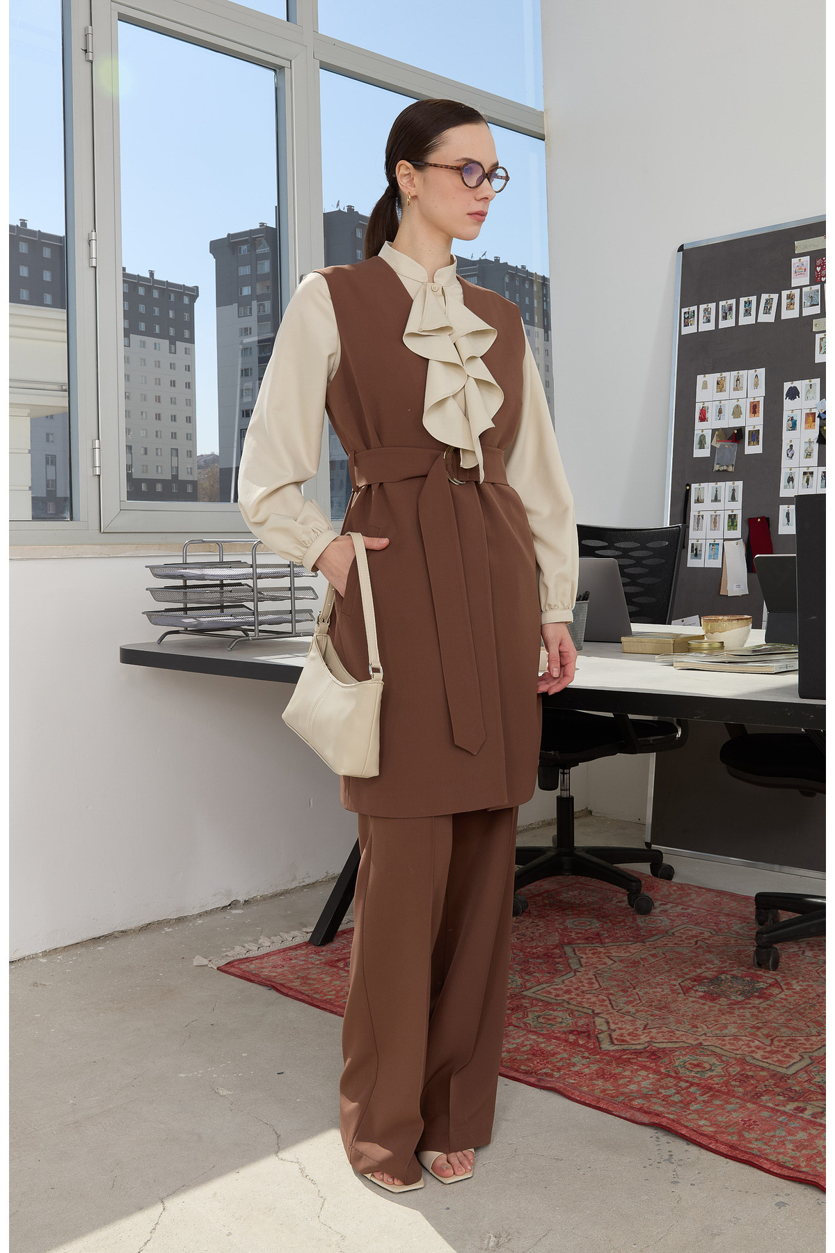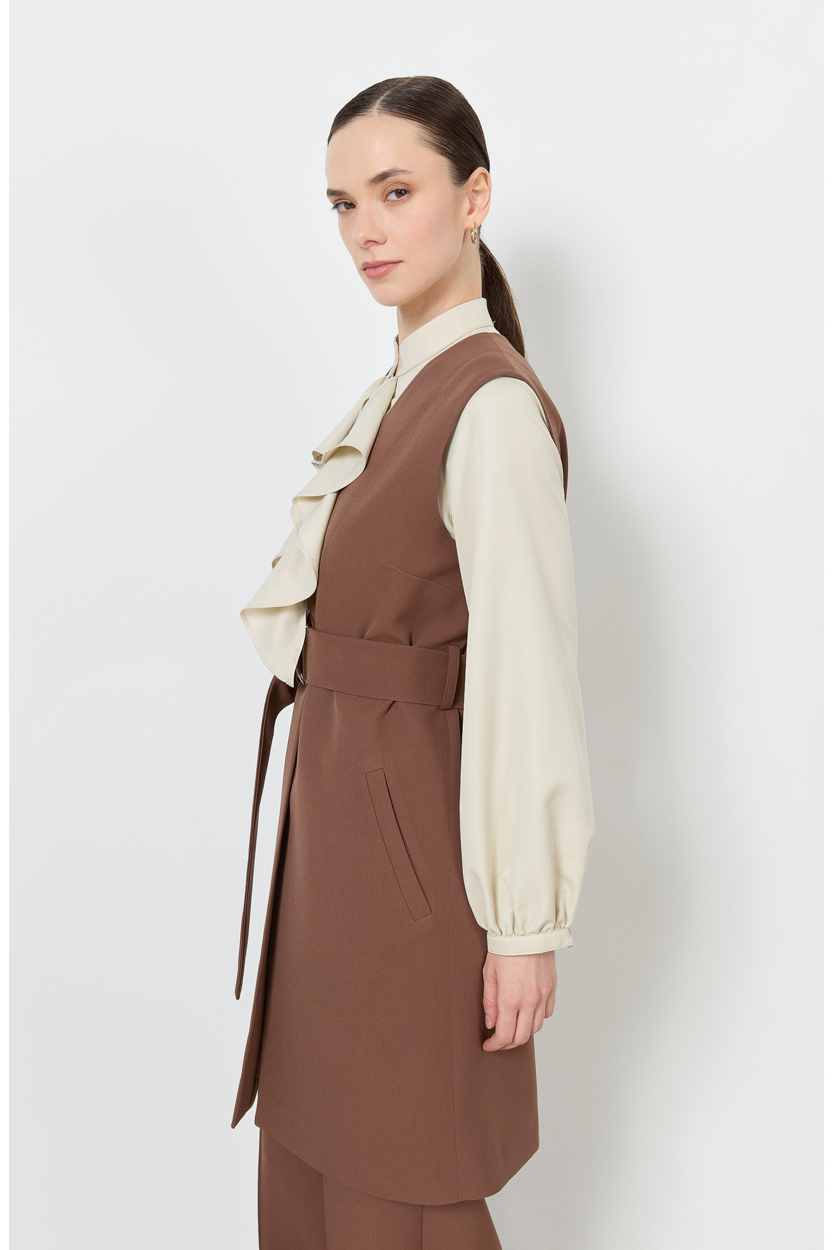Double Kemerli Çikolata Kahve Yelek Double Kemerli Çikolata Kahve Yelek FA2025BS-13046 XL