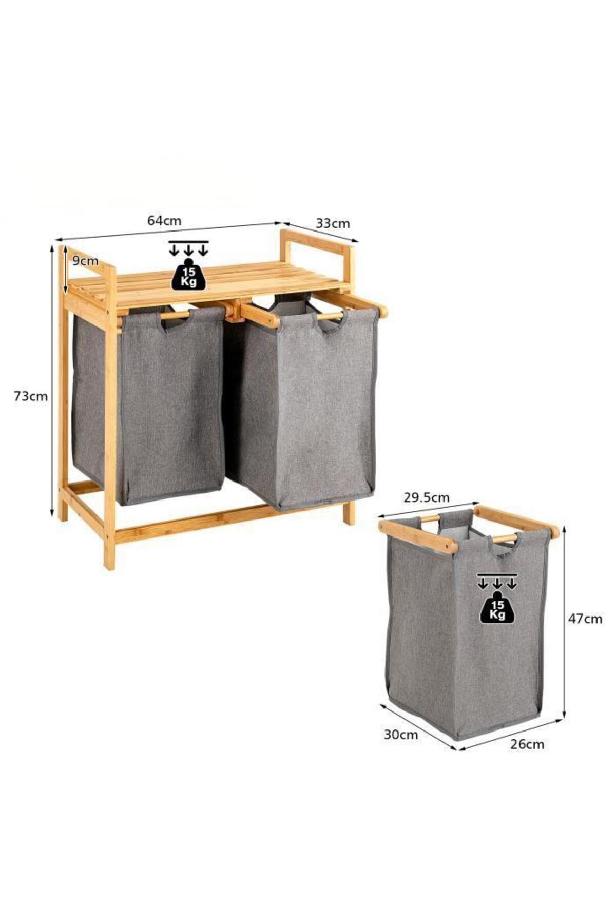 Bambu Ayaklı Çamaşır Sepeti 2 Bölmeli (64 x 33 x 73 CM) - Demonte Bambu Ayaklı Çamaşır Sepeti 2 Bölmeli (64 x 33 x 73 CM) - Demonte ACR-494/4 تک سایز