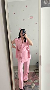 Bağlamalı İkili Kuşaklı Blazer Yelekli Pantolon Takım Bağlamalı İkili Kuşaklı Blazer Yelekli Pantolon Takım bqr-000720 42