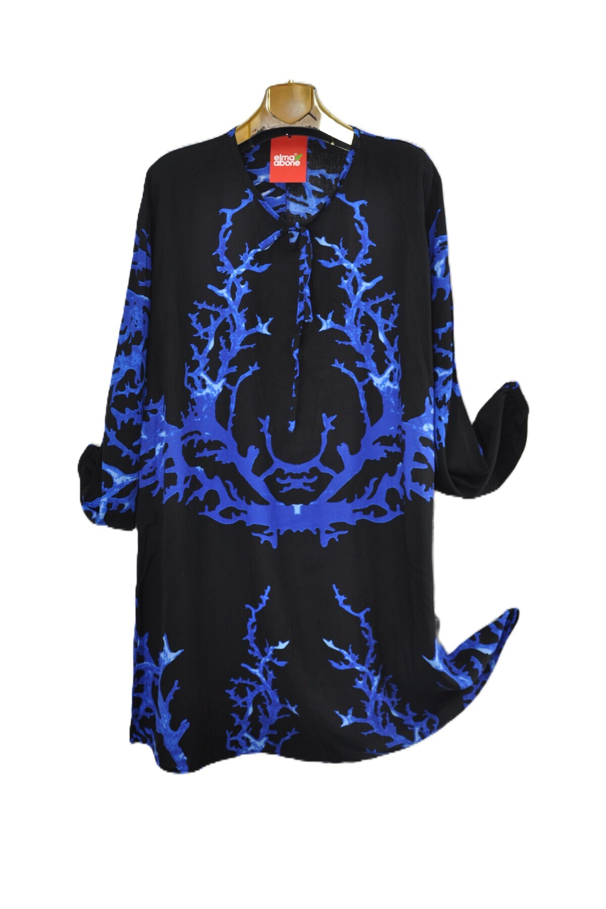 Kadın Taba Desenli Pamuk Viskon Büyük Beden Tunik Kadın Taba Desenli Pamuk Viskon Büyük Beden Tunik BY0011693-01-T 54