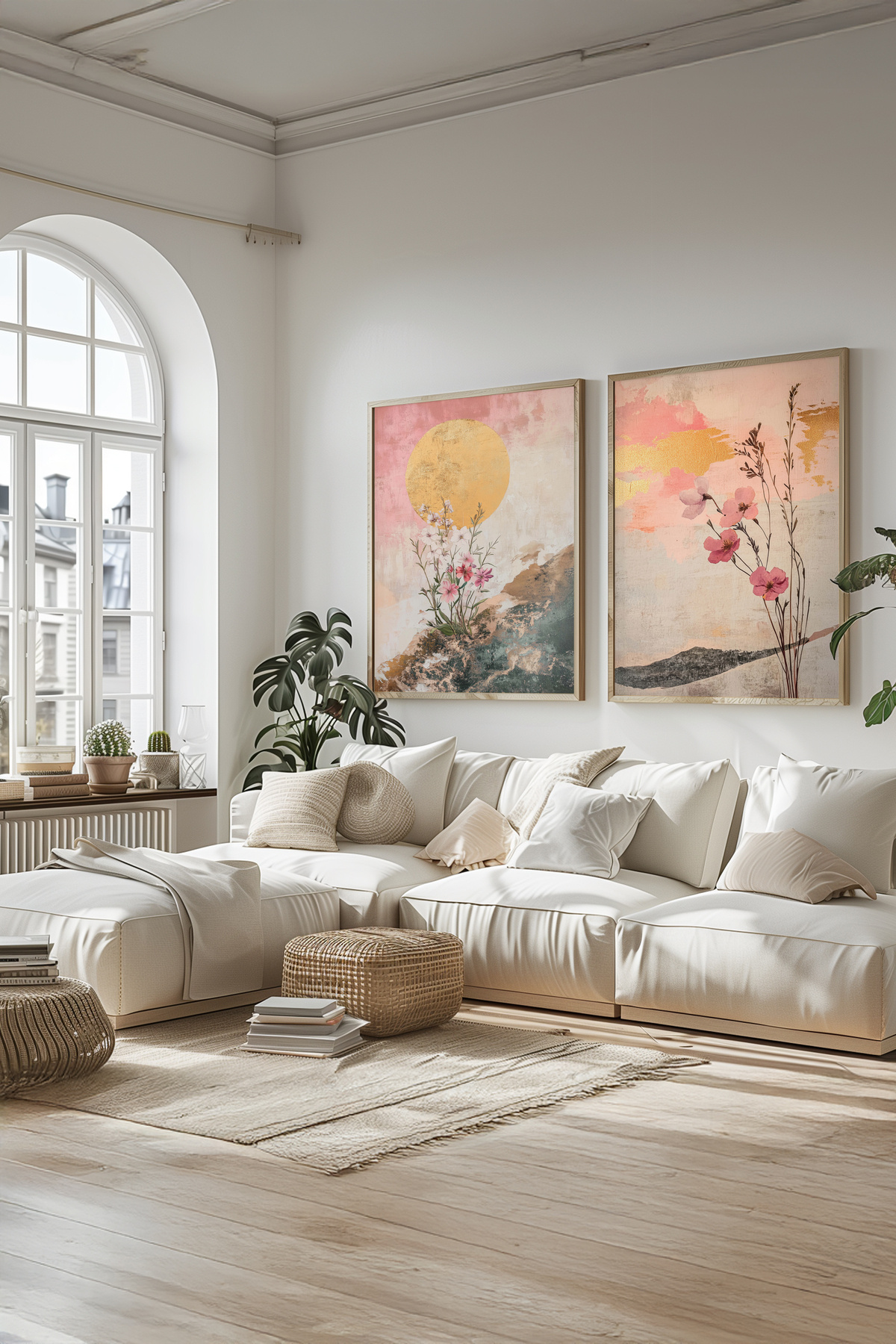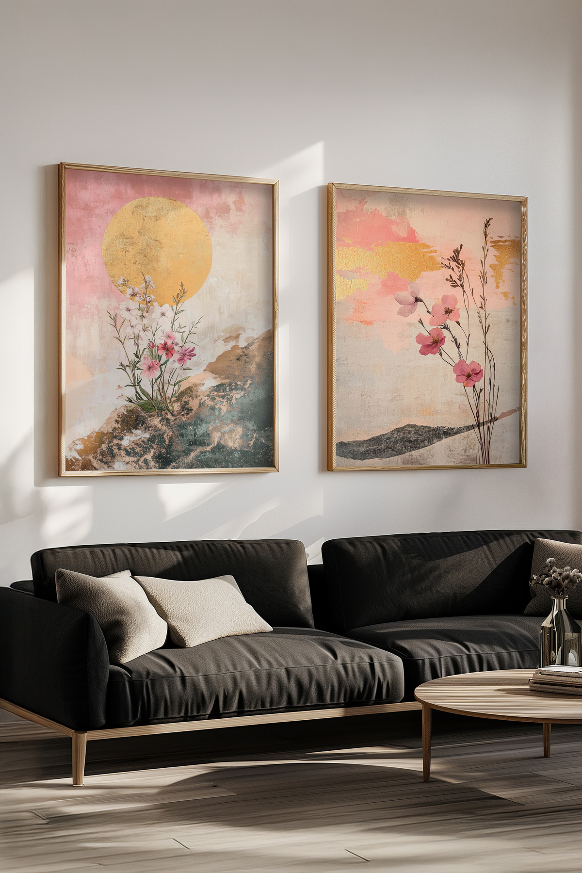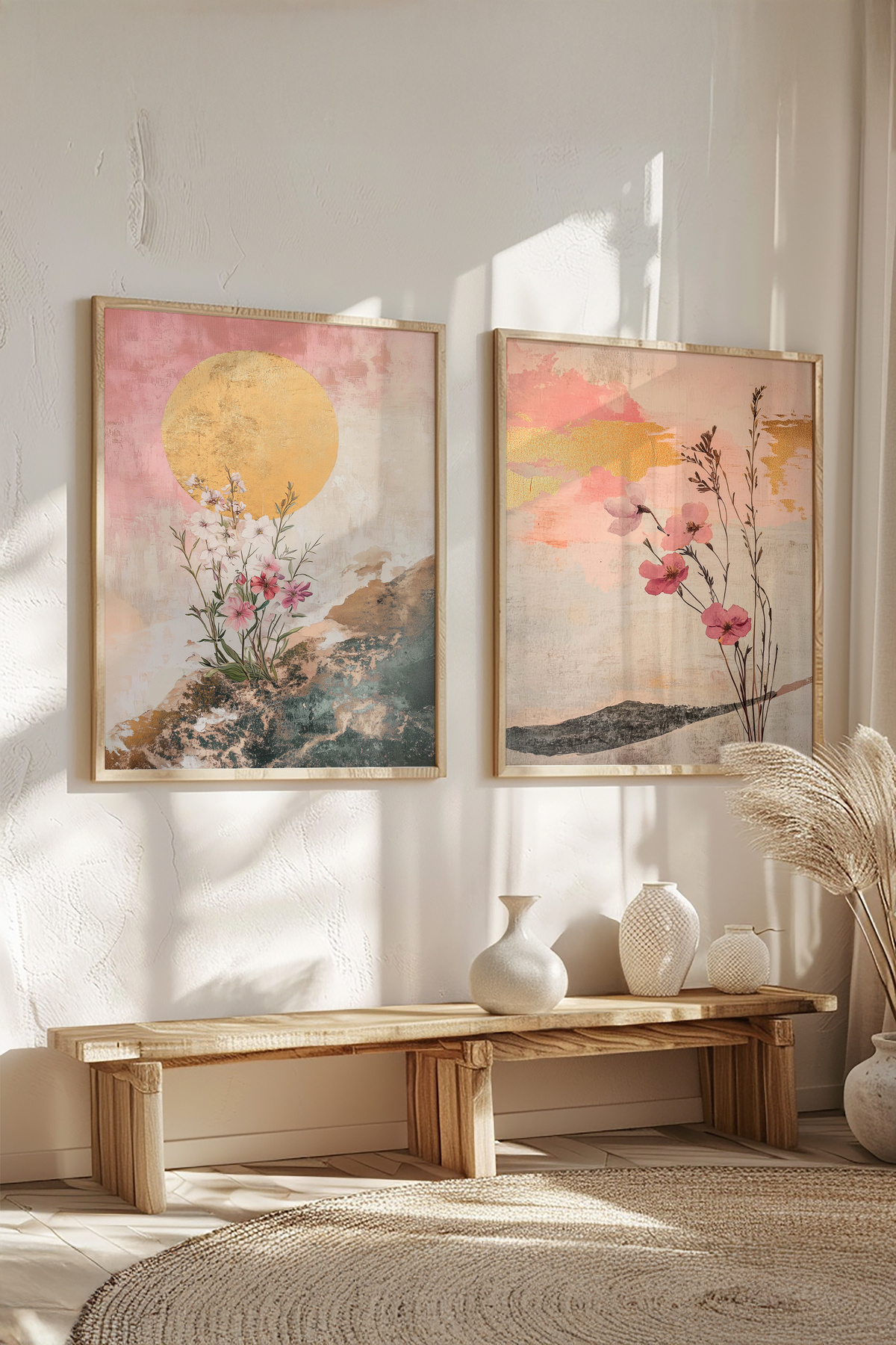 Çiçekli güneşli boho ahşap çerçeveli 2'li tablo seti Yuna151 Çiçekli güneşli boho ahşap çerçeveli 2'li tablo seti Yuna151 yuna151 50 x 70
