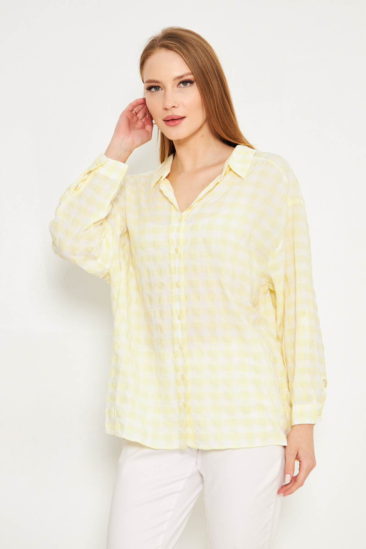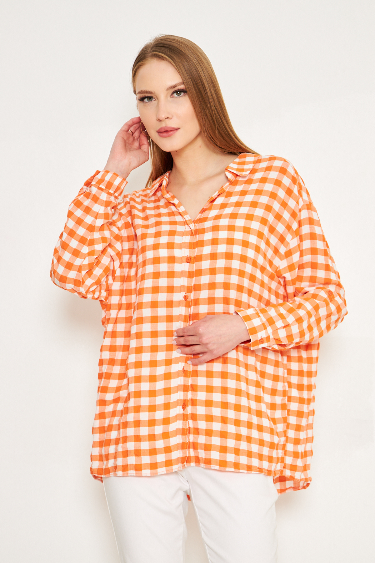 Kadın Gofre detaylı İpliği Boyalı Kareli Renkli Oversize PAMUK gömlek Kadın Gofre detaylı İpliği Boyalı Kareli Renkli Oversize PAMUK gömlek 1252 42