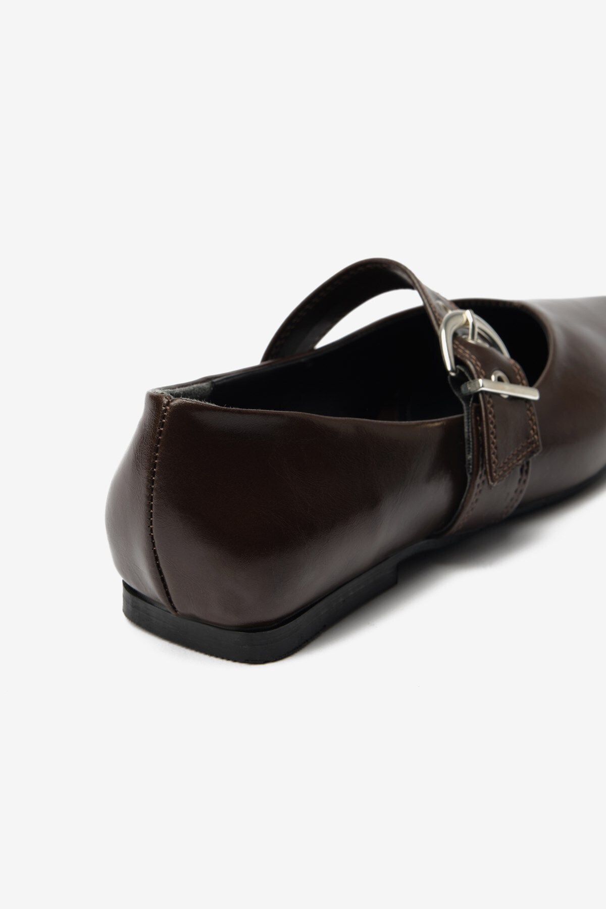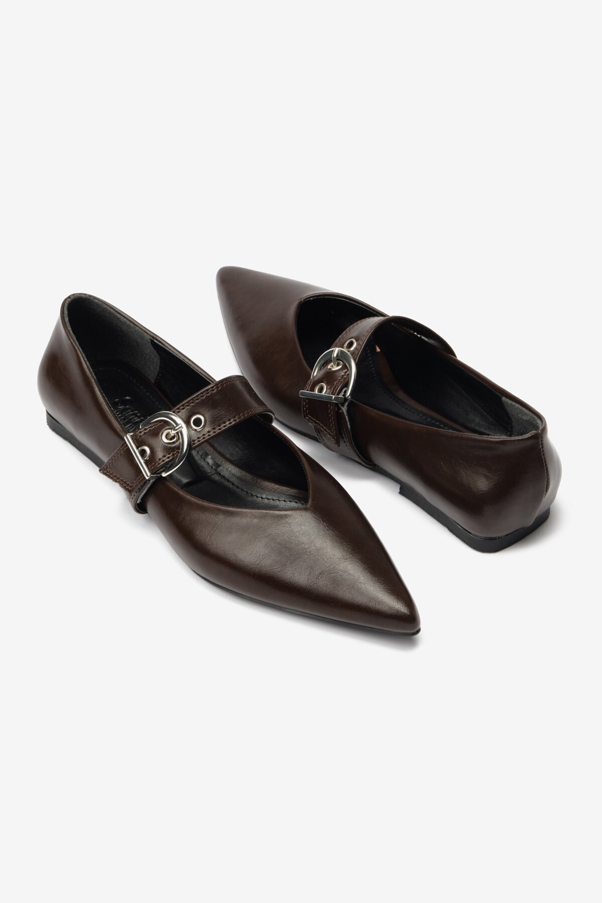 Kahverengi Rugan Toka Detaylı Sivri Burun Kadın Babet Kahverengi Rugan Toka Detaylı Sivri Burun Kadın Babet P-0216-2100-R 40