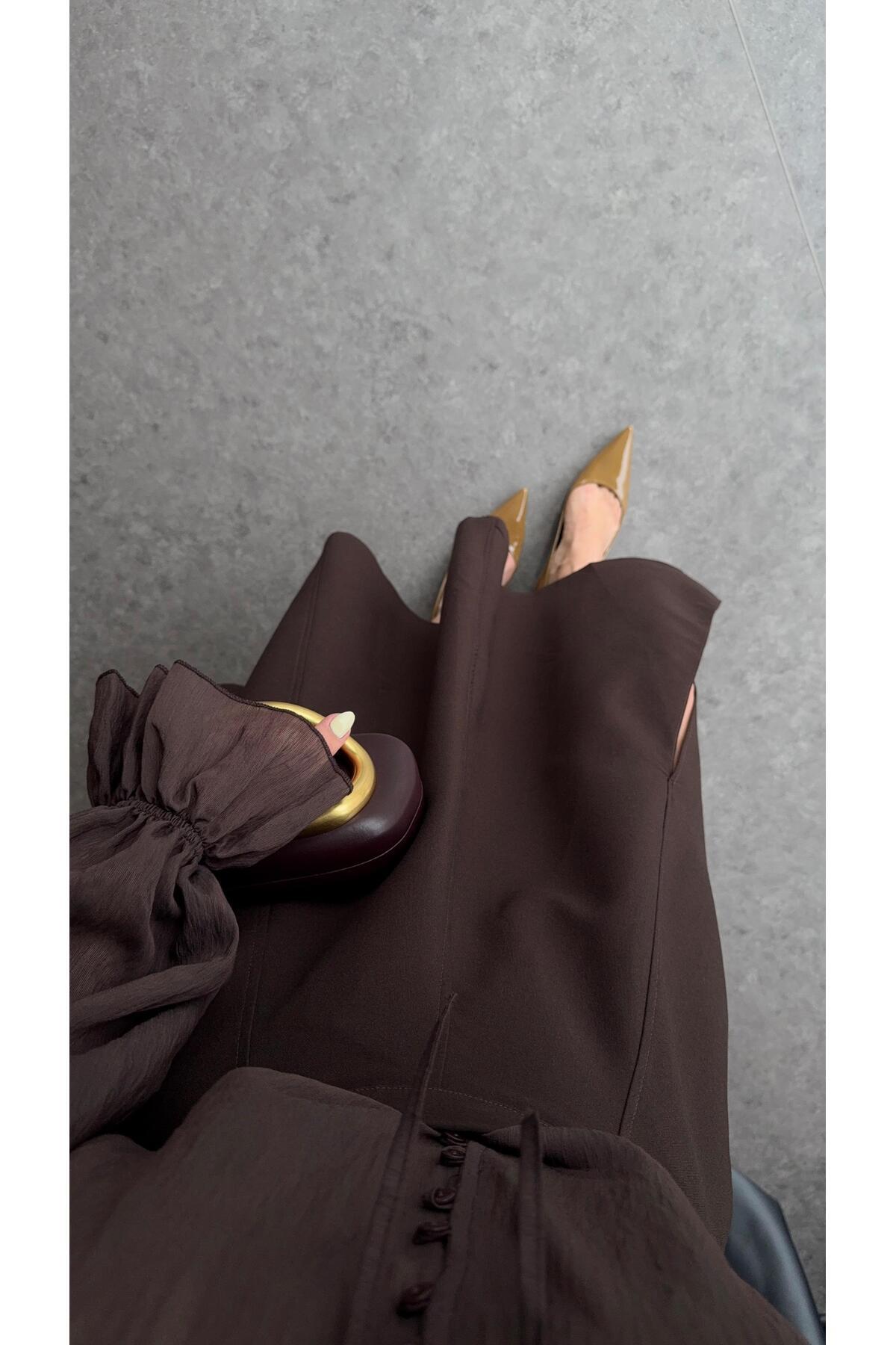 Godeli Yırtmaçlı Acı Kahve Etek Godeli Yırtmaçlı Acı Kahve Etek 11013 L