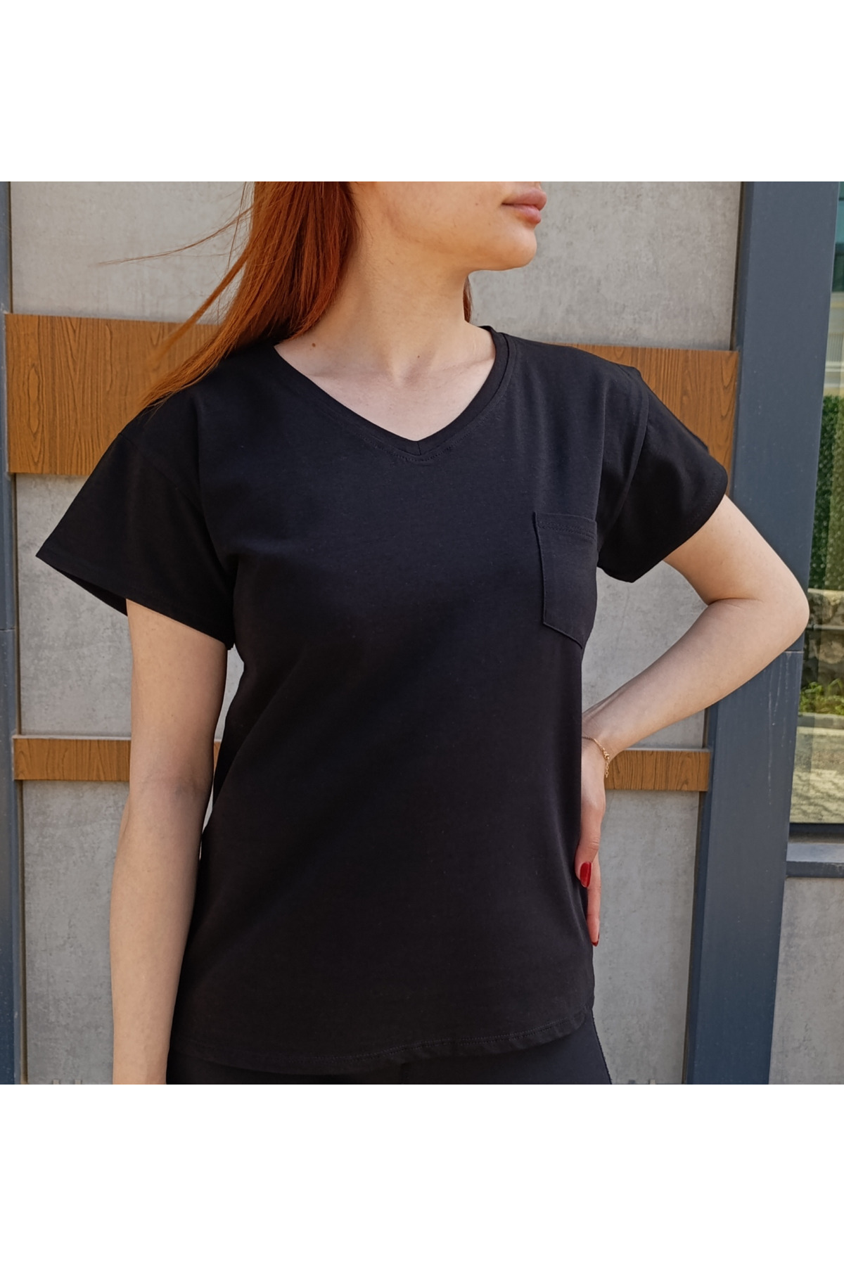 Kadın V Yaka İp Detaylı Rahat Kesim Bordo T-Shirt-Tişört Kadın V Yaka İp Detaylı Rahat Kesim Bordo T-Shirt-Tişört 96451677 XL