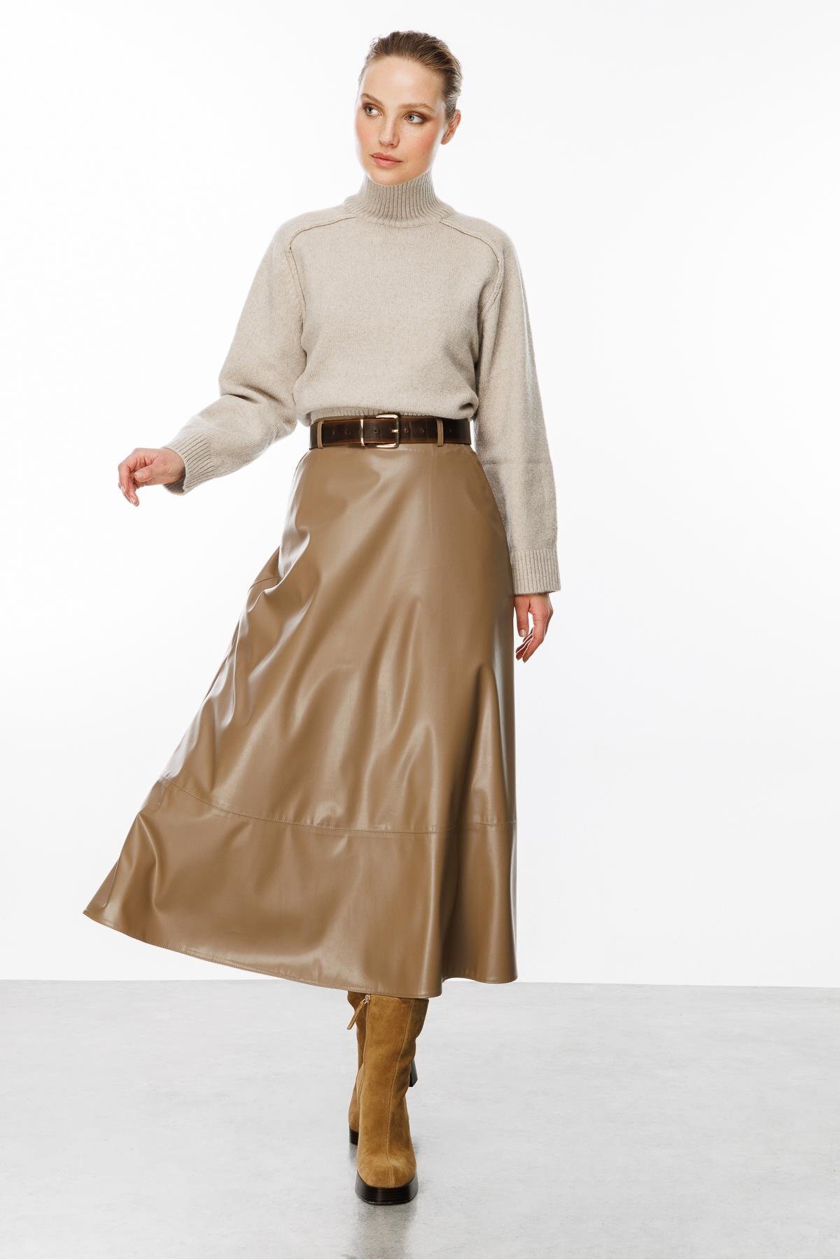 Cep Detaylı Uzun Deri Etek-VİZON Cep Detaylı Uzun Deri Etek-VİZON 4WKB31K1621 42
