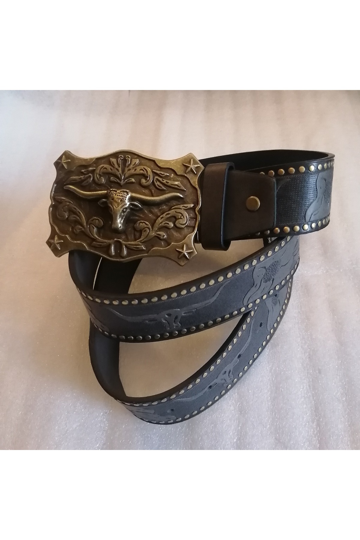 Unisex otantik suni deri gri çiçek boğa baskılı bronz antik desenli boğa başlı kovboy tokalı kemer Unisex otantik suni deri gri çiçek boğa baskılı bronz antik desenli boğa başlı kovboy tokalı kemer 5575964 120 CM