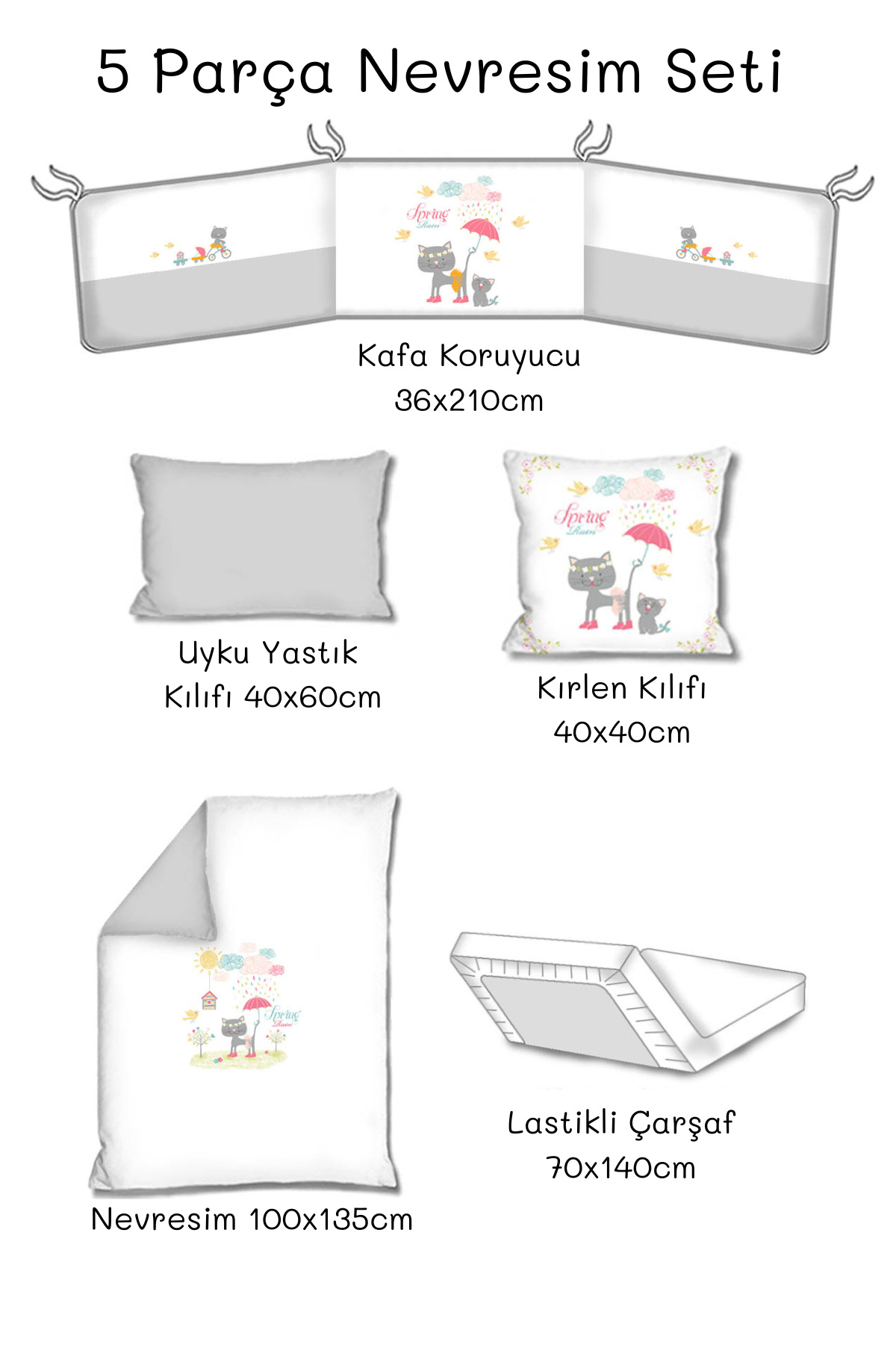 Bebek 5'li Uyku Seti %100 Pamuk 100x135cm Gri Spring Rain -Nevresim Takımı- 70x140 Lastikli Çarşaf Bebek 5'li Uyku Seti %100 Pamuk 100x135cm Gri Spring Rain -Nevresim Takımı- 70x140 Lastikli Çarşaf syd-nevset-7&5 تک سایز