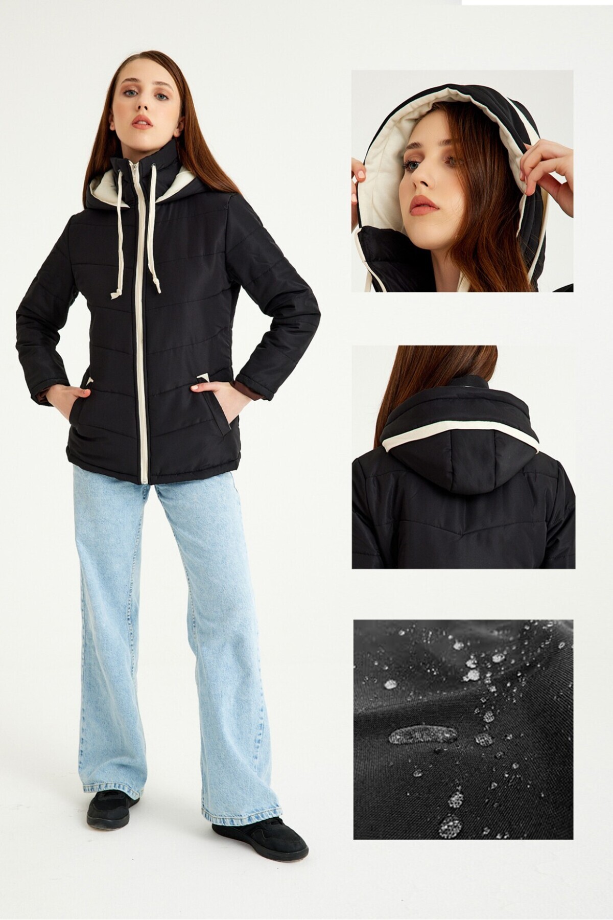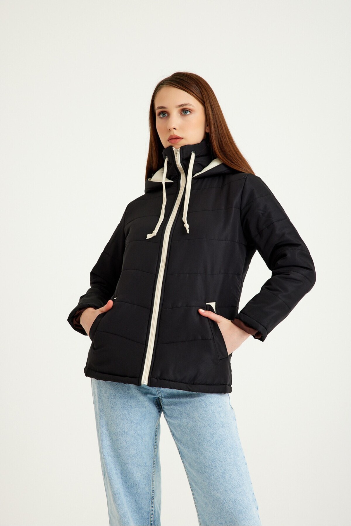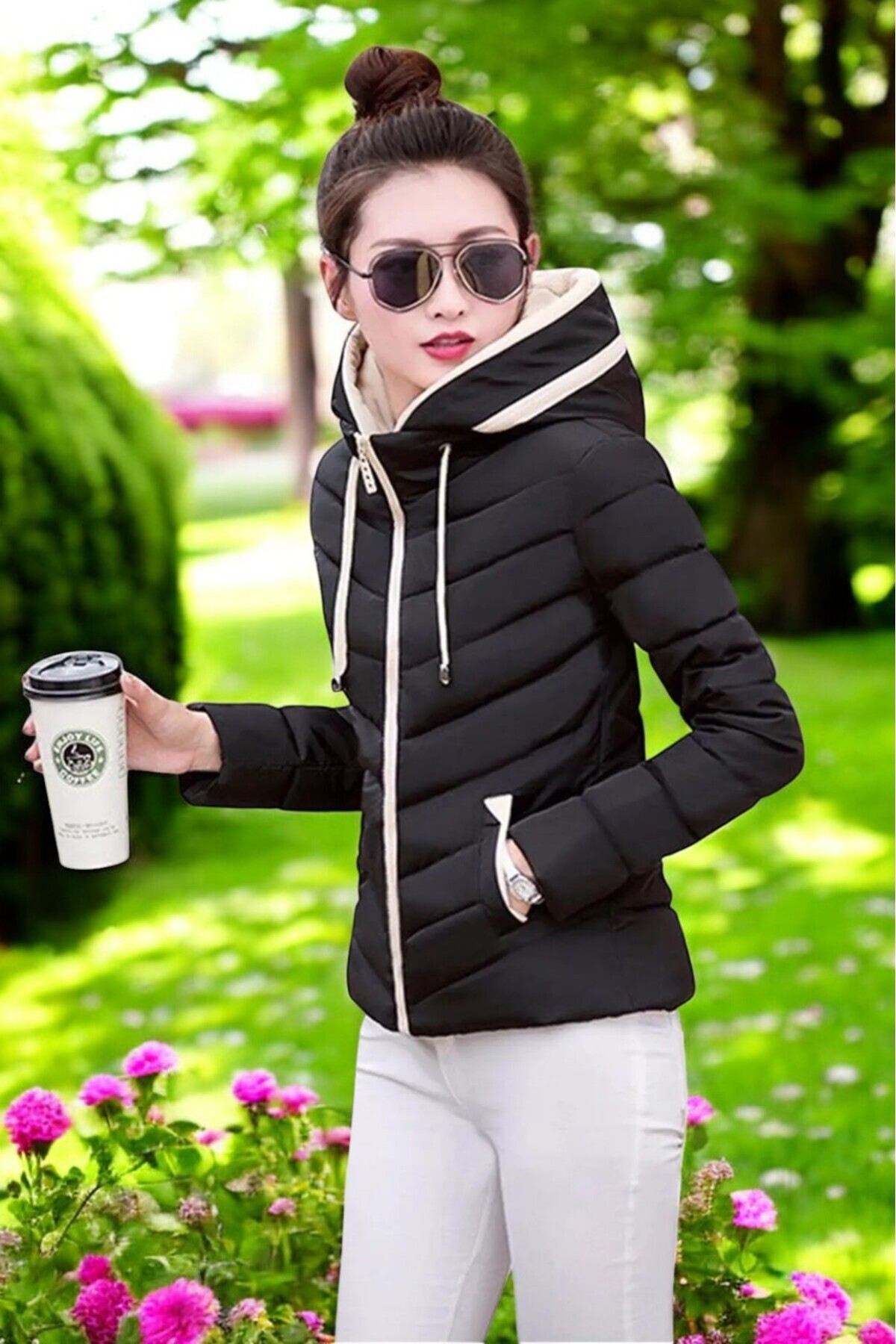 Kısa Kapüşonlu Kışlık Şişme Mont Kısa Kapüşonlu Kışlık Şişme Mont nva811siyah 2XL