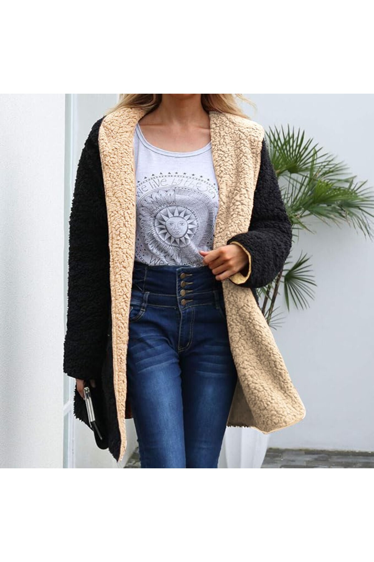 Kışlık Cep Detaylı Tasarım Peluş Ceket Kışlık Cep Detaylı Tasarım Peluş Ceket nva05krem 2XL