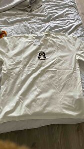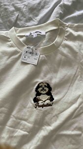 Kısa Kollu Bisiklet Yaka Pamuklu Köpek Nakışlı Oversize Tişört Kısa Kollu Bisiklet Yaka Pamuklu Köpek Nakışlı Oversize Tişört 5SAL10841IK XL