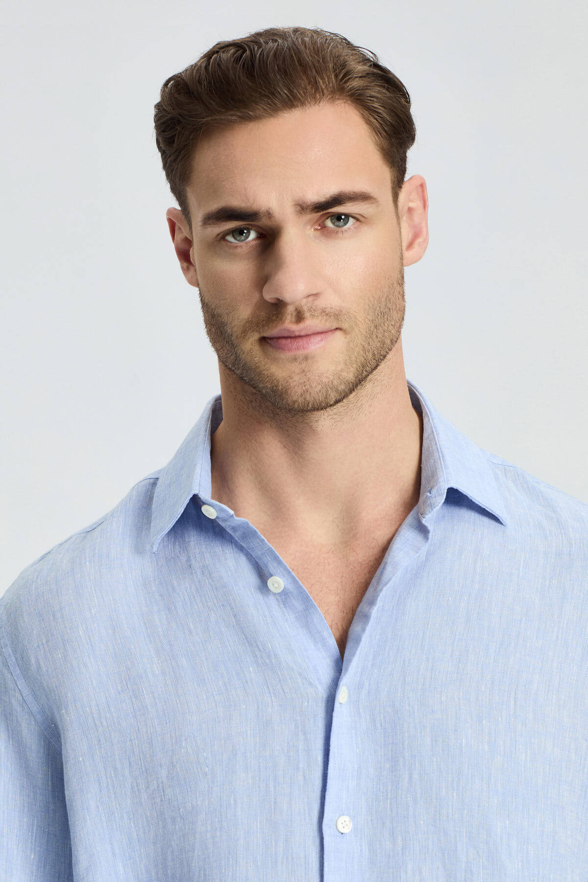 Gök Mavisi Saf Keten Spor Gömlek Gök Mavisi Saf Keten Spor Gömlek 252504|009 48