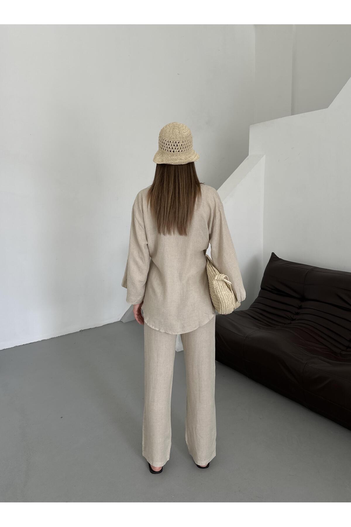 Natural Detaylı Yan Bağlamalı Keten Kumaş Kimono Takım Natural Detaylı Yan Bağlamalı Keten Kumaş Kimono Takım Efil - 8373 L
