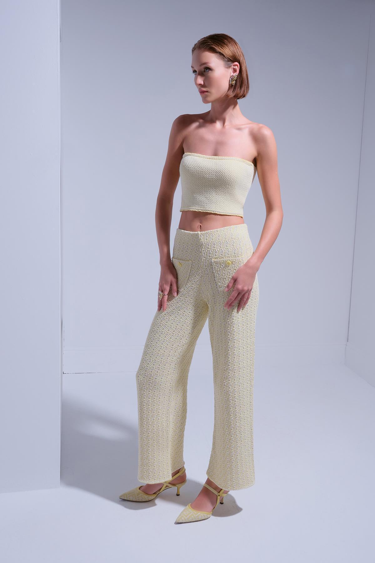 Süs Cep Detaylı Sarı Tüvit Pantolon Süs Cep Detaylı Sarı Tüvit Pantolon 2025S027300 L