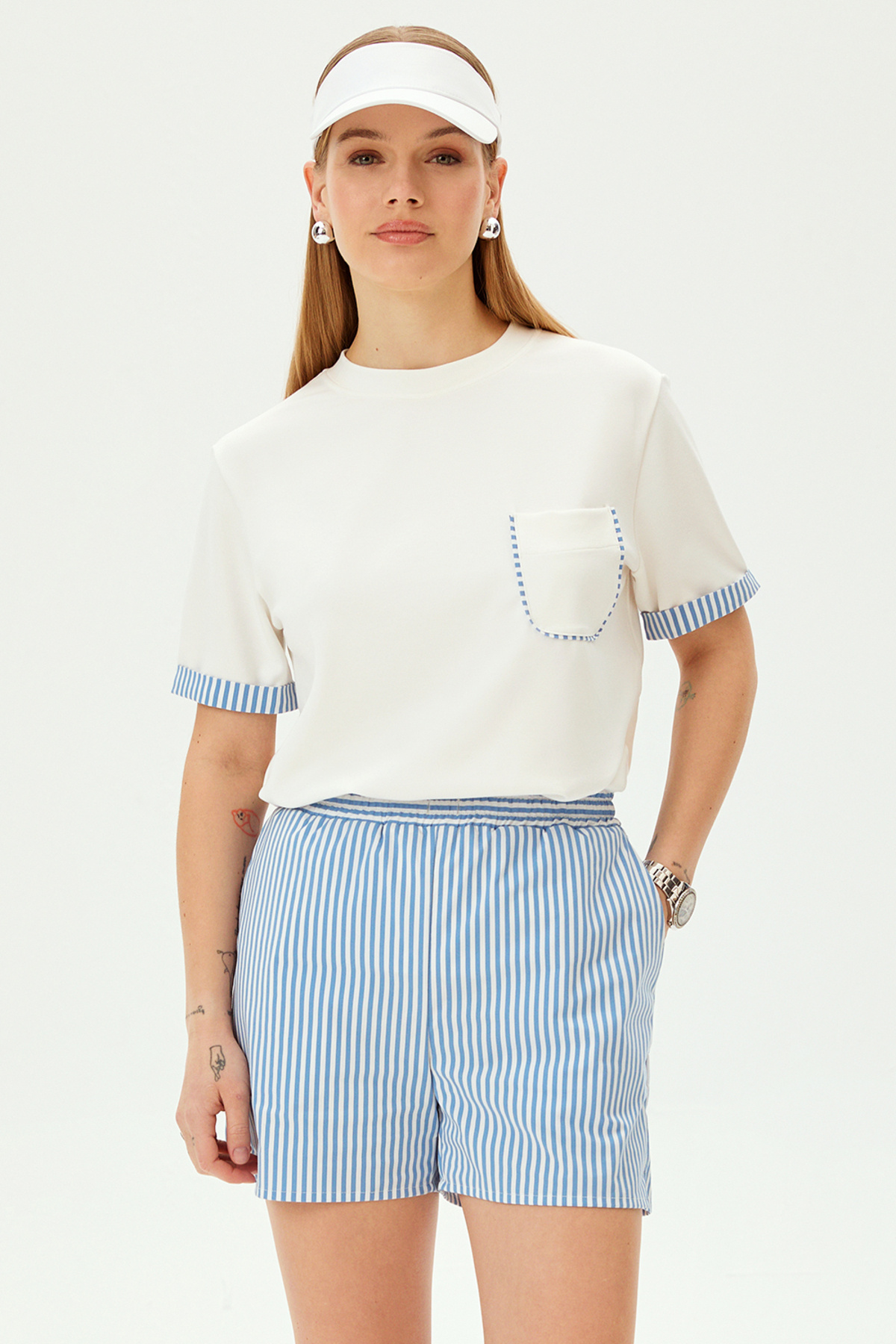 Beli Lastikli Kısa Çizgi Detaylı Rahat Kalıp Pamuklu Şort Beli Lastikli Kısa Çizgi Detaylı Rahat Kalıp Pamuklu Şort beli-lastikli-kisa-sort-a24k04113001 L